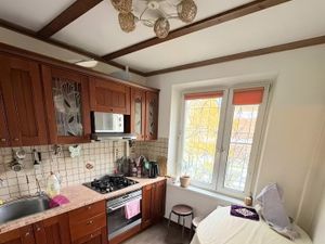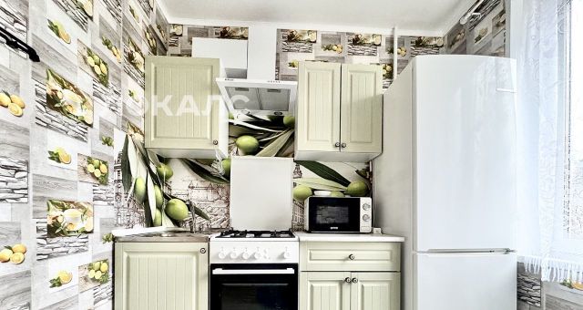 В квартире сделан евроремонт. Обстановка продумана до мелочей: есть вся необходимая мебель как в комнатах, так и на кухне. На кухне можно найти всю необходимую технику: холодильник, телевизор и стиральную машину. Санузел раздельный, в ванной комнате установлена ванна. Окна выходят на улицу и во двор, что позволяет выбрать нужный уровень освещенности и уединения.