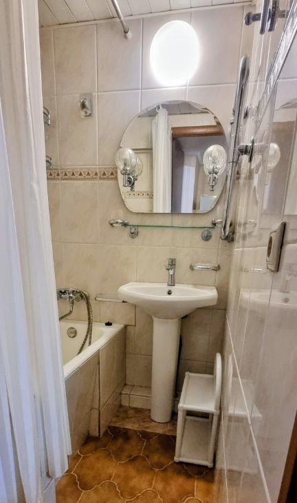 Санузел раздельный в плитке.