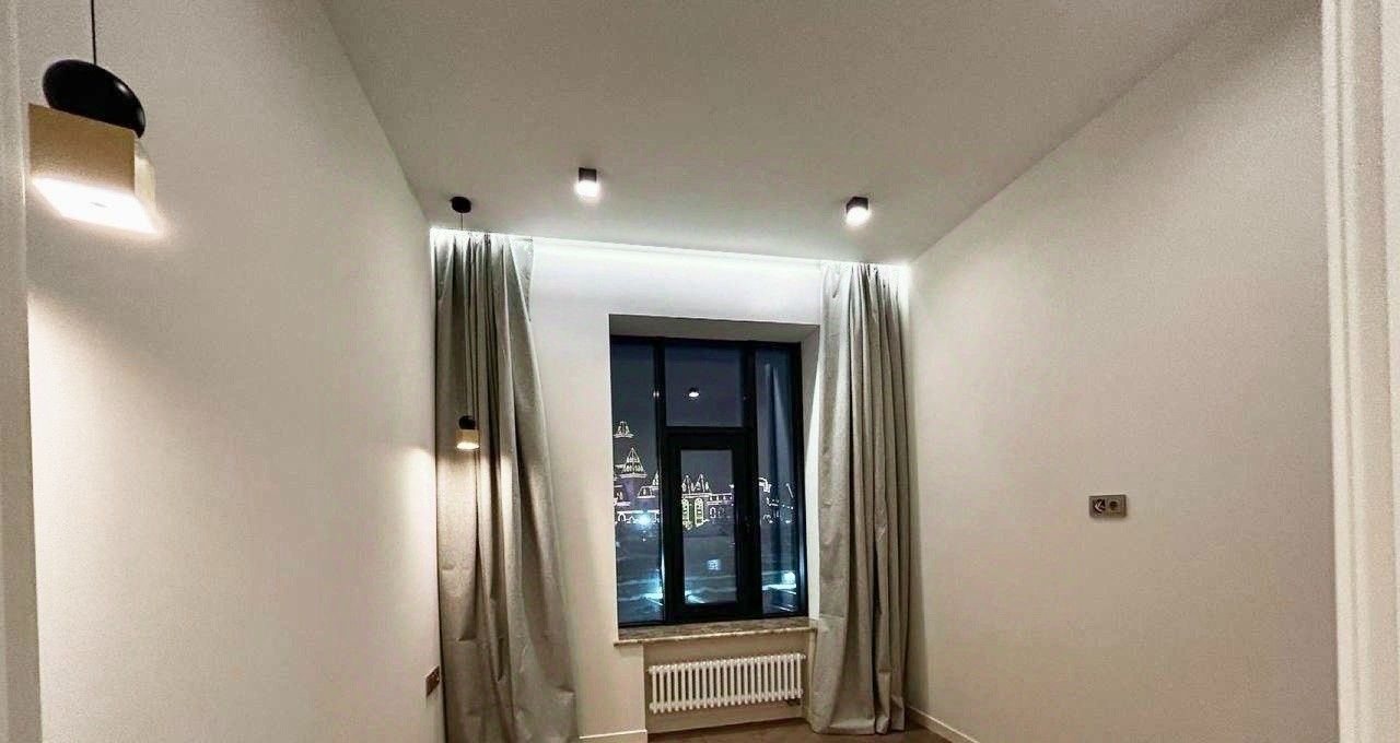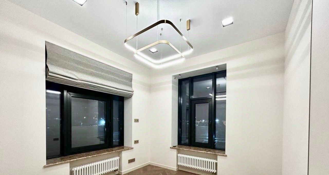• Планировка: кухня-гостиная, 3 изолированные комнаты, гардеробная, 2 санузла. Архитектурные световые системы Centersvet с различными сценариями освещения подчеркивают геометрию пространства. Санузлы оборудованы премиальной сантехникой Villeroy & Boch и Hansgrohe. Интегрирована система голосового управления шторами, водоснабжением и теплыми полами. Кухня оснащена встроенной техникой премиум-бренда Bosch (варочная панель, микроволновая печь, духовой шкаф, вытяжка, посудомоечная машина)