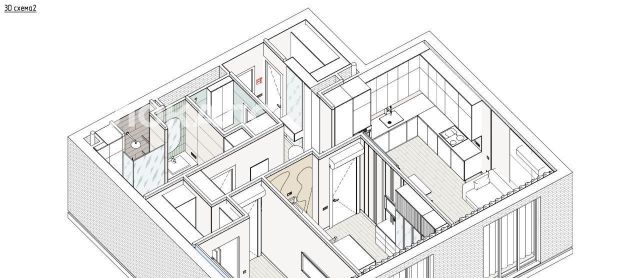 Площадь — 73,5 м², свободная планировка по дизайн-проекту:
