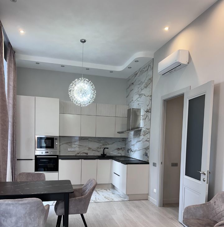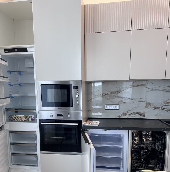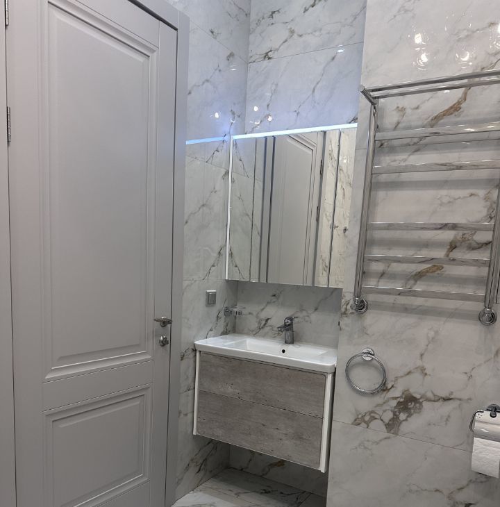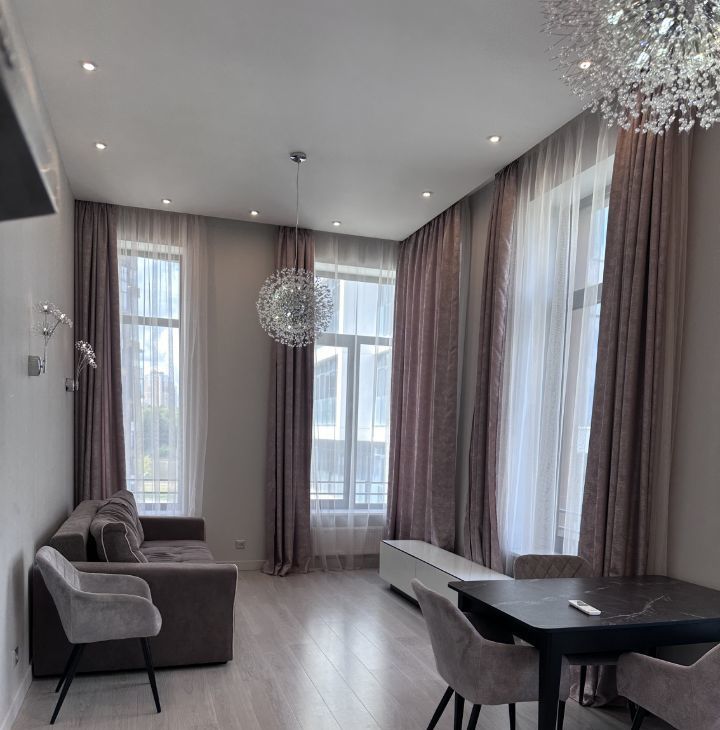 Сдается евро-трешка: кухня-гостиная, спальня, комната свободного назначения и два санузла. за дополнительную плату есть одно парковочное место 18 метров в подземном паркинге, рядом с лифтом.