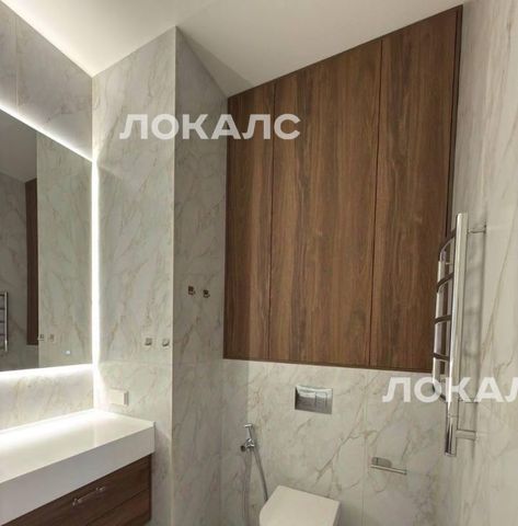 Квартира полностью меблирована, вся встроенная мебель изготавливалась под потолок из качественных материалов, заказана в центре дизайна Artplay, тумбы в спальне из мрамора, изготавливались также на заказ. На кухне каменная столешница, встроенная техника: холодильник с морозильной камерой Liebherr, духовой шкаф Bosch, варочная панель Bosch, посудомоечная машина Electrolux. Отдельная постирочная со стиральной машинкой Bosch. Просторная ванная комната с большим зеркалом и встроенным местом для хранения (шкаф над санузлом)