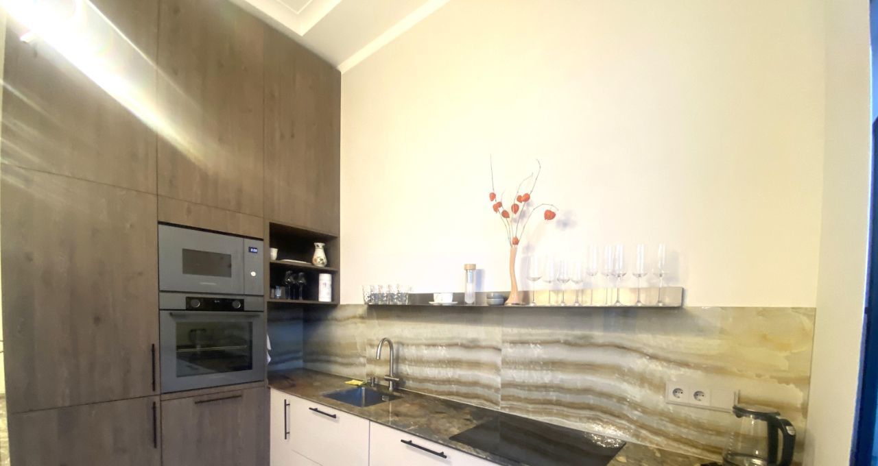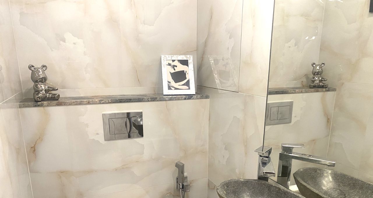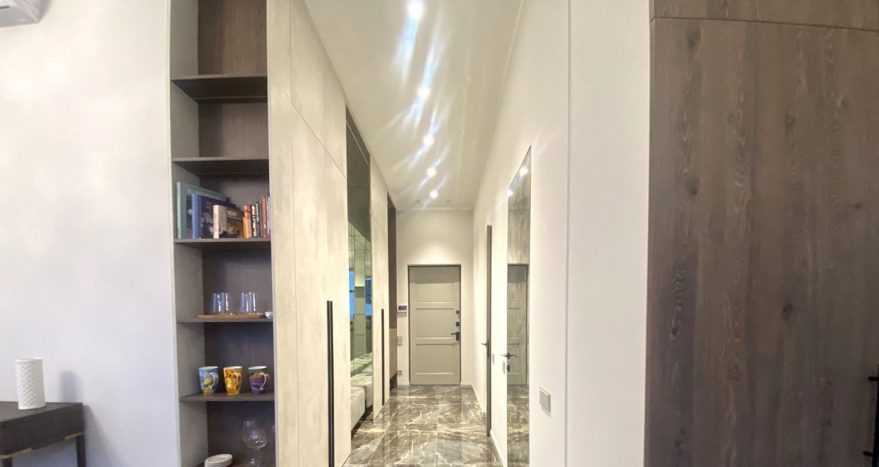 Планировка включает в себя: Просторную кухню-гостиную, основная спальня оснащена всем необходимым для комфорта. Вторая комната свободного назначения, которую можно использовать под кабинет, детскую или гостевую комнату., 2 санузла оборудованы качественной европейской сантехникой,гардеробная и постирочная.
