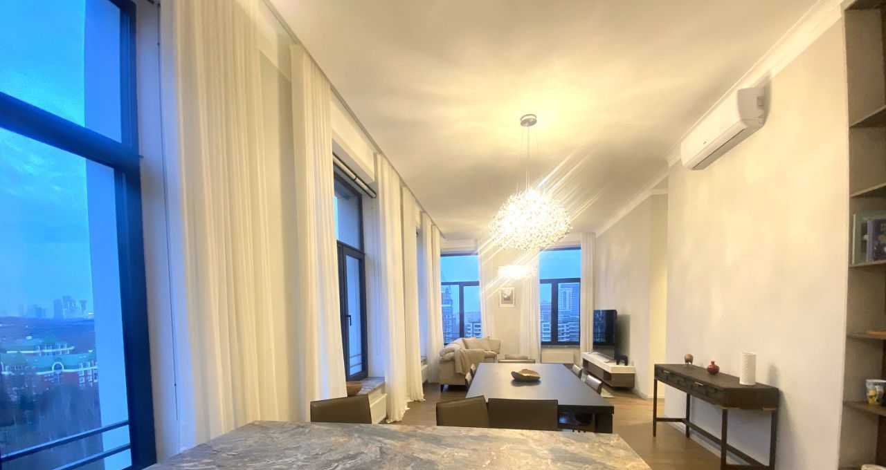 Благодаря панорамным окнам, в квартире очень светло, окна выходят на набережную, во двор.
