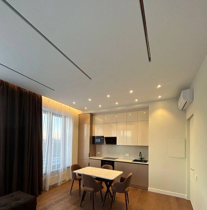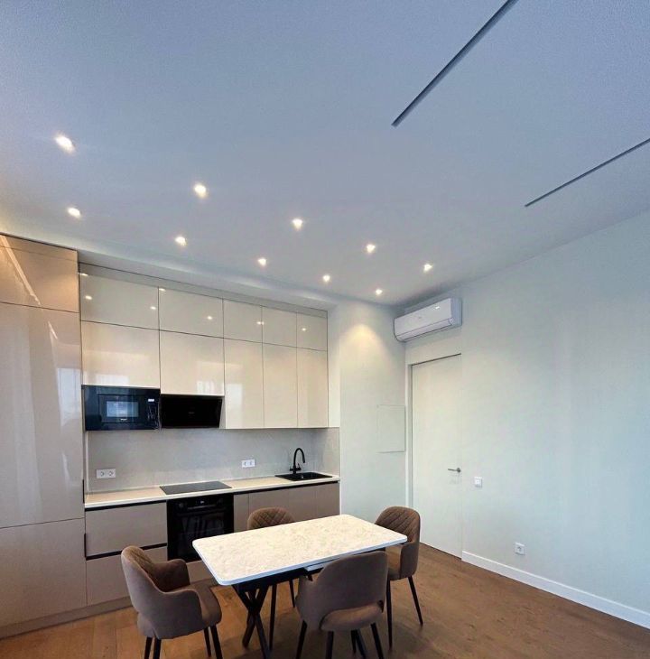 Квартира с новым, качественным евроремонтом, продуманной планировкой и высокими потолками 2.8 метра. Жилая площадь составляет 40 кв. м, просторная кухня — 20 кв. м, что позволит вам с комфортом готовить и проводить время в кругу семьи. В квартире есть все необходимое для жизни: кондиционер, холодильник, посудомоечная машина, телевизор и стиральная машина. Комнаты и кухня полностью меблированы. 2 санузла.