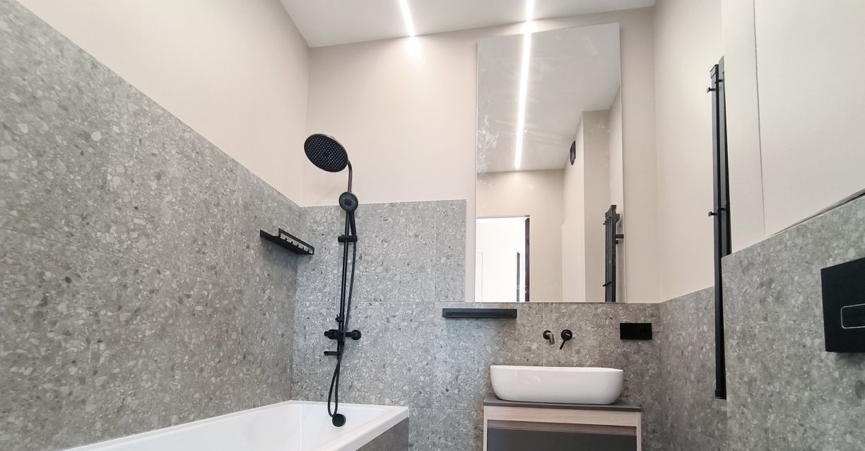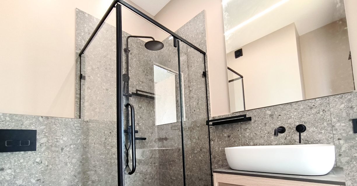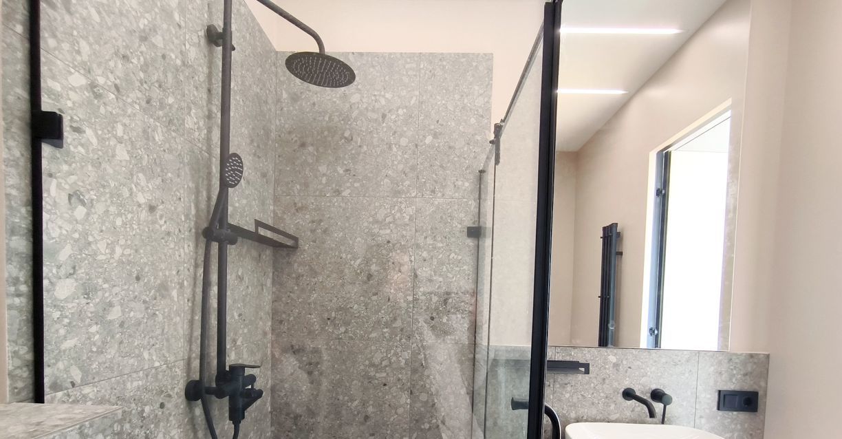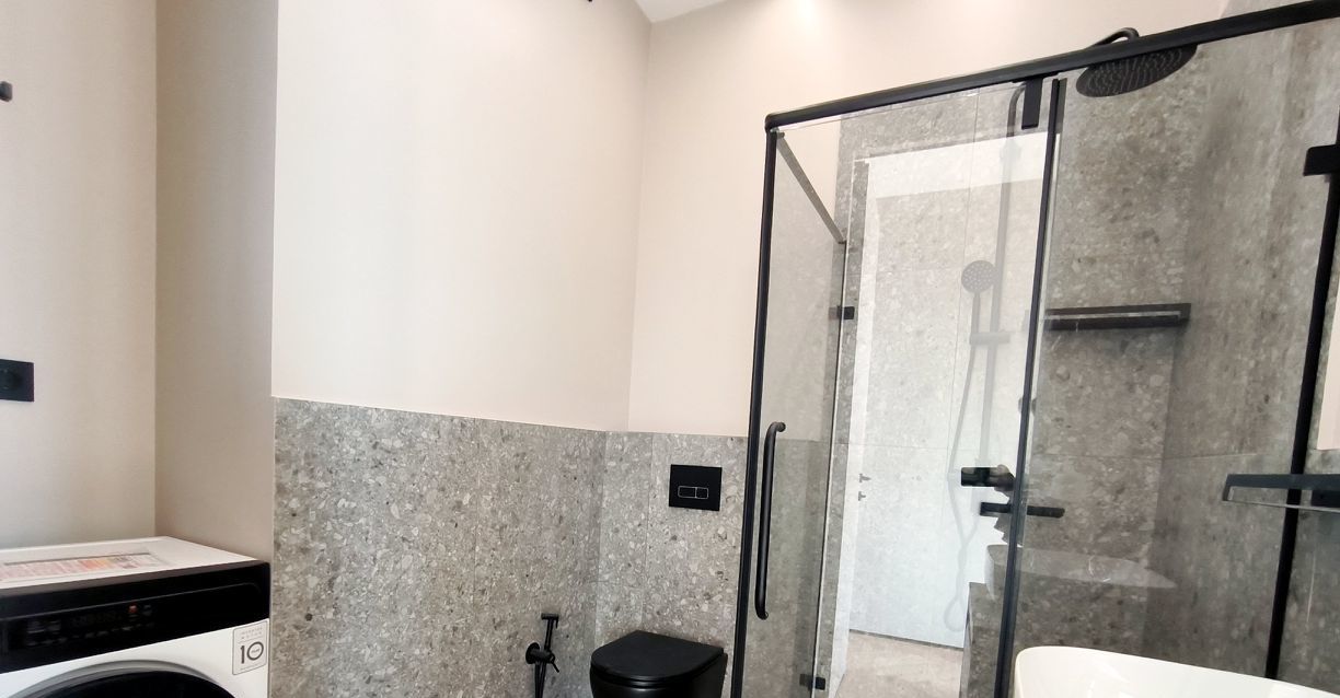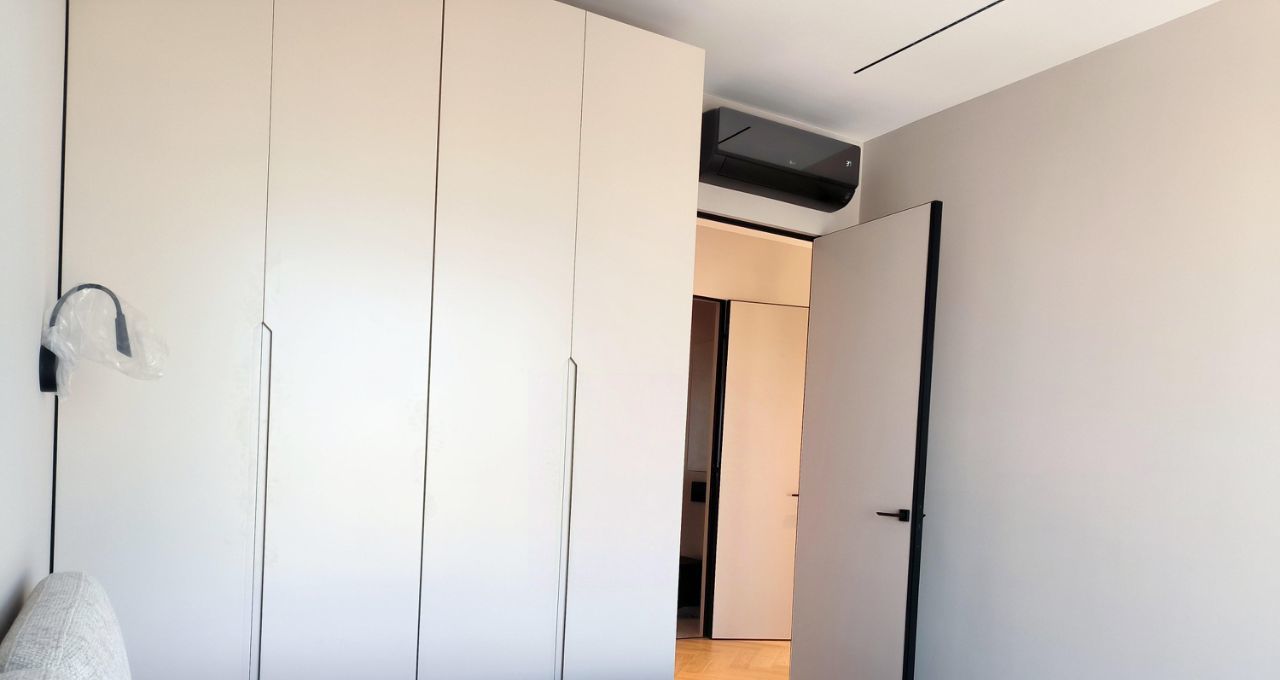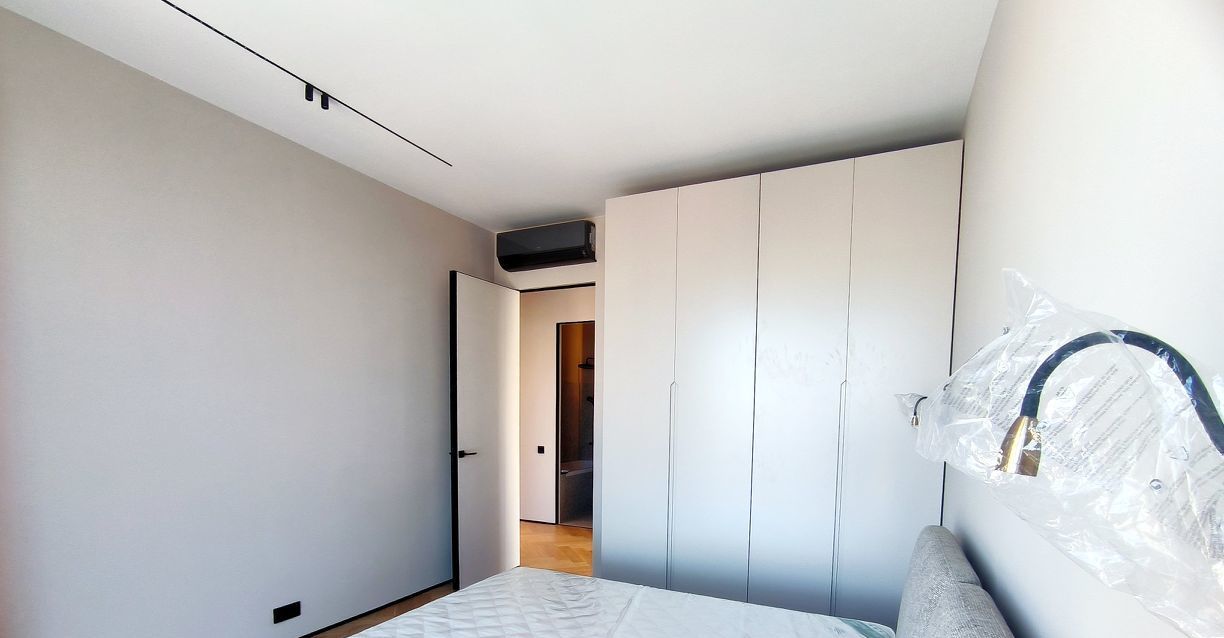 Две спальни с кондиционерами, два санузла - один с ванной, второй с душевой кабиной.