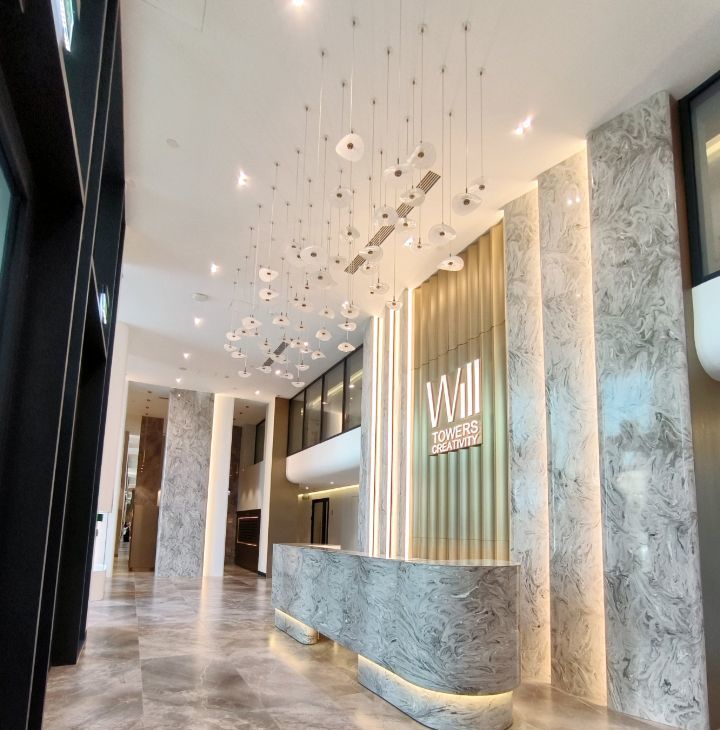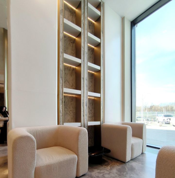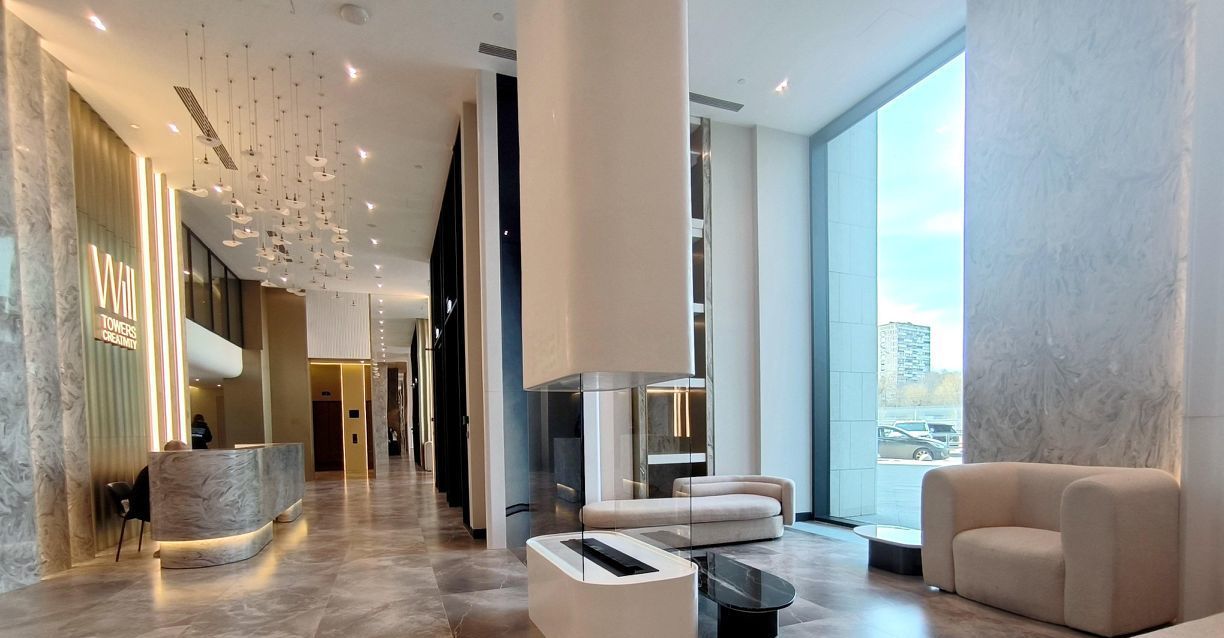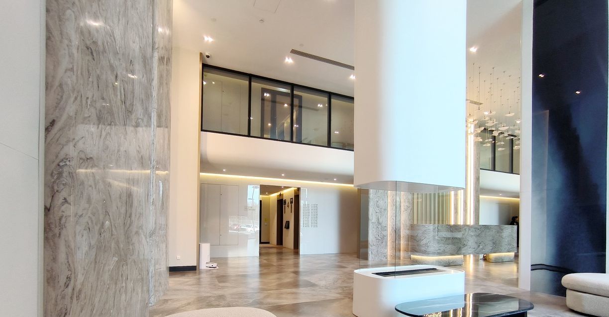 Дом Бизнес класса с представительным Гранд лобби, консьерж сервисом и отделкой фасадов натуральным камнем.