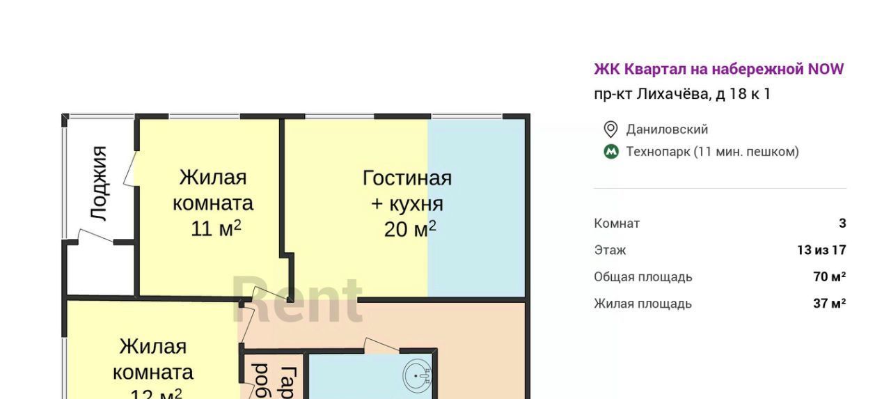 3-к кв. Москва просп. Лихачева, 18к1 (70.0 м²)