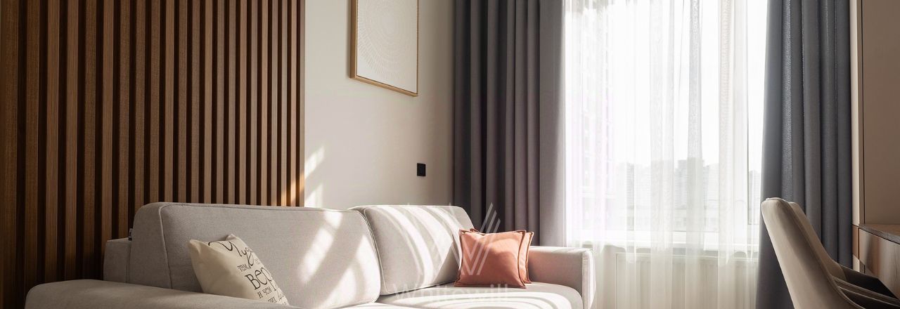 Главное о доме. 17 корпусов с уникальными фасадами из известняка, мрамора и клинкера образуют 4 приватных блока, соединённых зелёными бульварами. Вы проводите время в парке у реки: качаетесь на городских качелях, играете в баскетбол или медитируете под шум воды. Ваш ребёнок в это время играет с друзьями на детской площадке. В пентхаусе с потолками 5,7 метров можно устроить мастерскую или творческое пространство для своих.