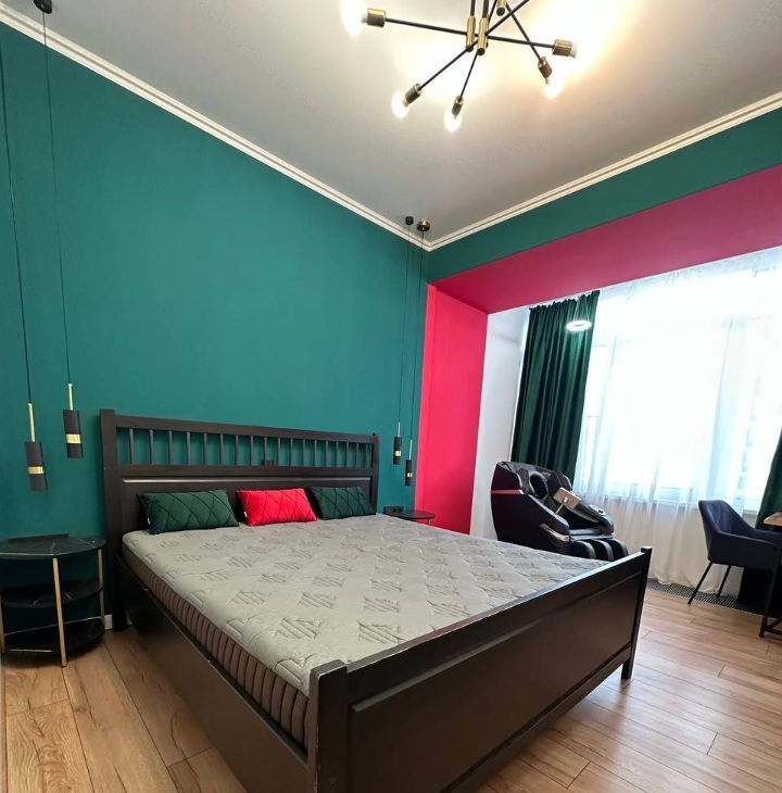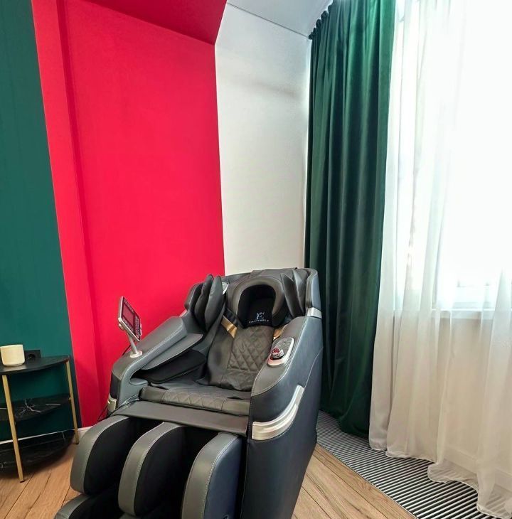 Каждая комната уникальна и со своей неповторимой изюминкой. В каждой комнате есть кондиционер и телевизор. В спальне большая кровать размера king-size, зона отдыха и релакса: можно расслабиться в массажном кресле и посмотреть любимую передачу, а можно полюбоваться закатом или расслабиться полностью и послушать с закрытыми глазами медитацию или Вашу любимую музыку.