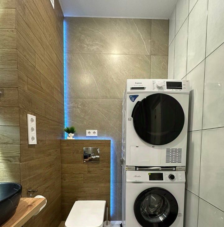 В излюбленной всеми кухне-гостиной можно вспомнить места где уже побывали или помечтать и запланировать новые путешествия, а также можно удобно разместить сидя 12 человек, а при необходимости и больше. Пространство позволяет организовать как спокойный семейный ужин, так и веселую активную вечеринку. Места хватит всем!) В гостиной установлен проектор и музыкальные колонки с продуманным звуком и освещением. Удобные увеличенные, поддерживающие стулья и высокий ортопедический диван фирмы Сокруз добавят комфорта Вашему отдыху, а домашние помощники в виде посудомоечной, стиральной и сушильной машин, моющего робота-пылесоса освободят Ваше драгоценнейшее время.