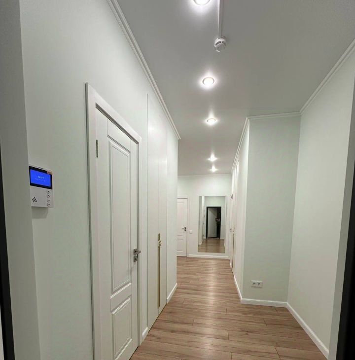 Сдается впервые стильная, современная, медийная 85 кв.м. трёхкомнатная квартира премиум класса с дизайнерским ремонтом, домашним кинотеатром, объёмным звуком, круговой шумоизоляцией в спальнях и зоной релакса. Квартира оборудована двумя полноценными органичными сан. узлами (один с душевой, другой с увеличенной ванной, подсветками, широкоформатной плиткой, тропическим душем), массажным креслом, двумя гардеробными, 3 шкафами в коридоре, большой рабочей зоной в детской и отдельной рабочей зоной для взрослых в спальне, просторной кухней-гостиной с огромной п-образной кухней, большим двухдверным холодильником и функциональной барной стойкой и стульями.