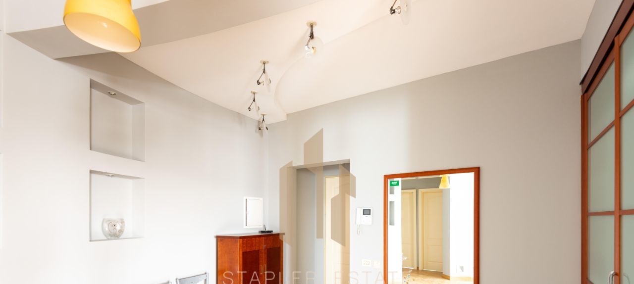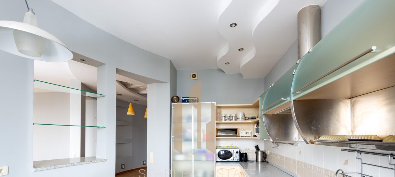 Общая площадь квартиры составляет 108.8 кв.м, высота потолков - 3,2 м, что создает ощущение простора и свободы.
