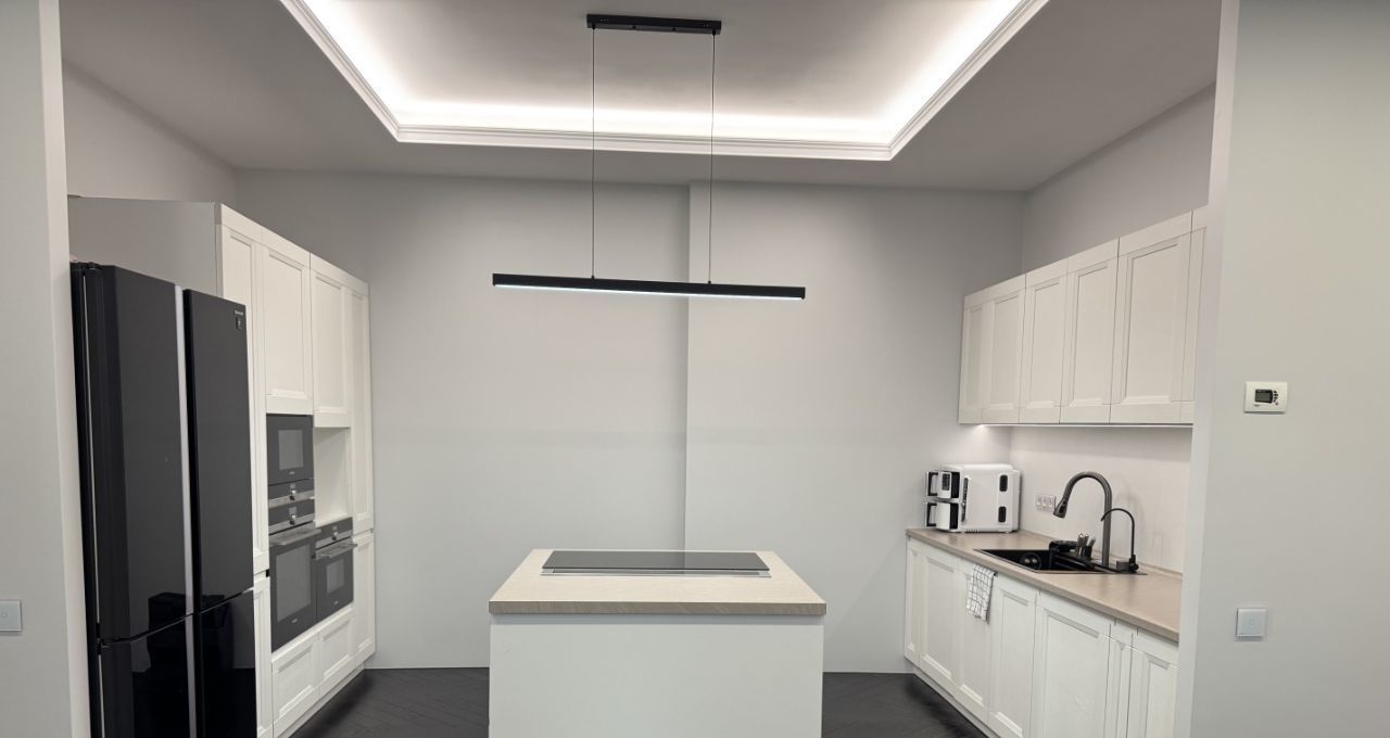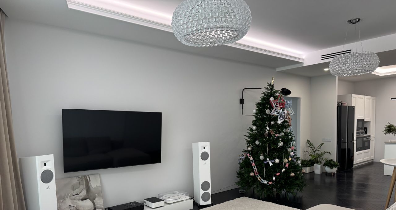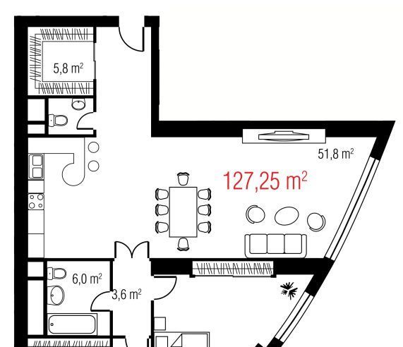 Большая кухня-гостиная, две изолированные спальни, два санузла, вместительная гардеробная-кладовая.