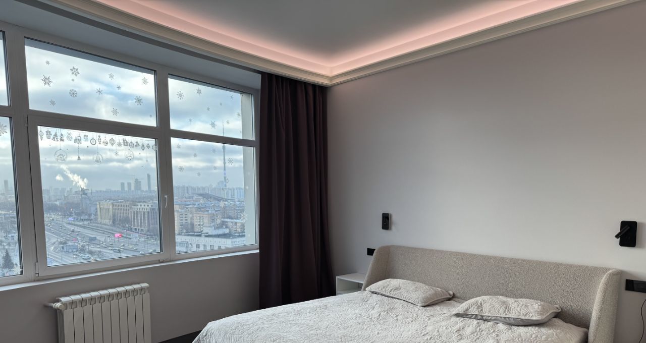 3-комнатная квартира 128 м² в ЖК Триколор с панорамным видом на ВДНХ и парк Акведук — зелёное пространство для прогулок прямо за окнами.