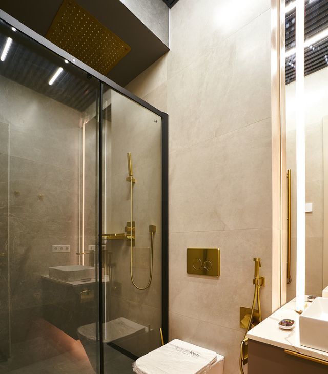 Система приточно-вытяжной вентиляции, окна с шумоподавлением, два санузла с ванной и душевой кабиной, с тропическим душем и подсветкой, для тех кто любит повеселее.