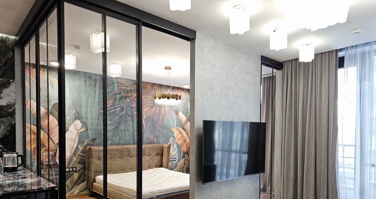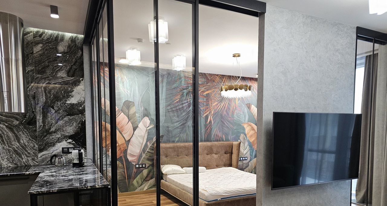 Спальня: Кровать 180200. Отдельный вход в гардеробную комнату. Телевизор 65 диагональ