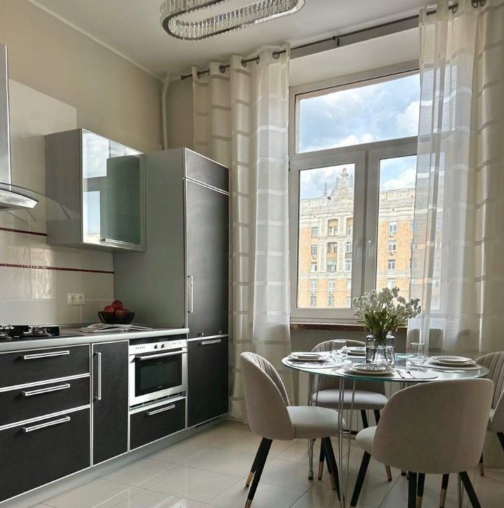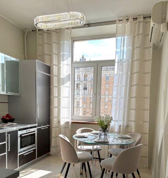 Просторная и очень светлая квартира с качественным современным ремонтом и потолками более 3 метров — ощущение воздуха, объёма и комфорта. Удобная планировка: просторная кухня 10 м, три изолированные комнаты, холл, санузел и балкон.