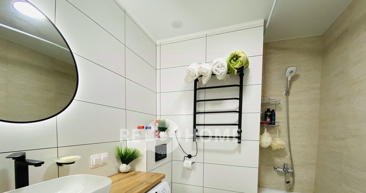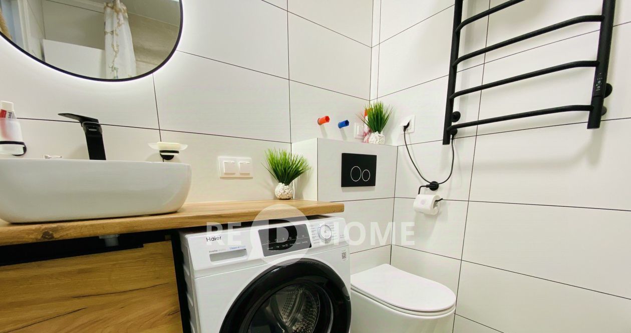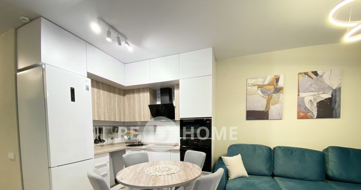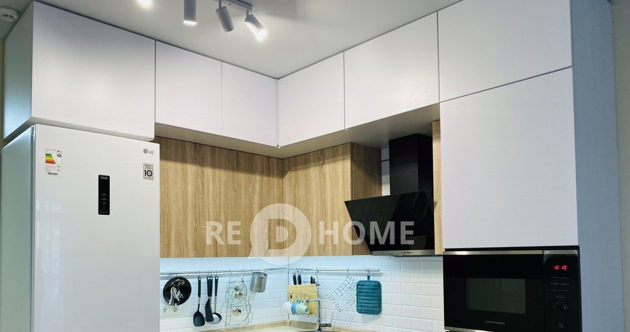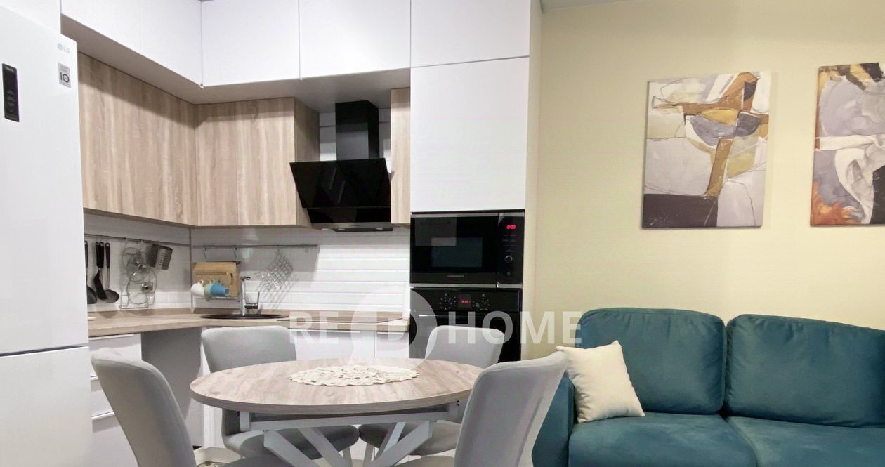 В квартире сделан дизайнерский ремонт, есть необходимая мебель и бытовая техника (холодильник, духовой шкаф, варочная поверхность, микроволновка, стиральная машина, телевизор). Окна квартиры смотрят в тихий двор.