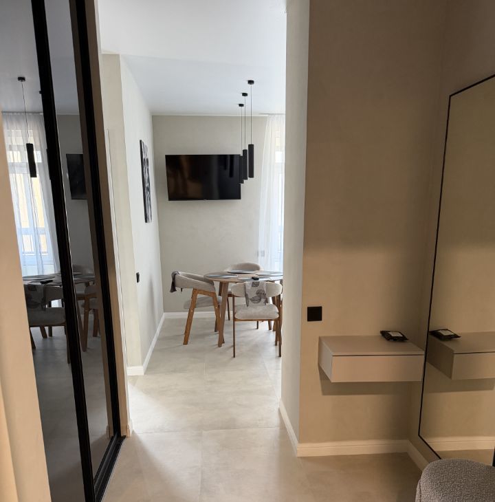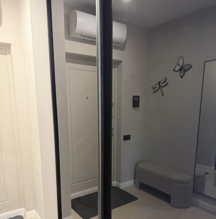 Квартира встречает вас с порога светлой стильно оформленной прихожей с гардеробной комнатой. Удобная зона с пуфом и зеркалом в полный рост. Есть видеодомофон.