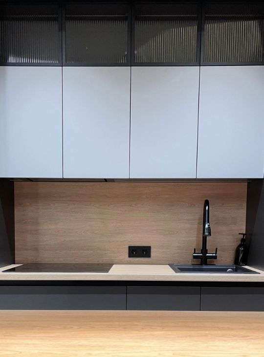 Просторная кухня-гостиная с выходом на собственную террасу. Духовой шкаф, СВЧ-печь, посудомойка, кран с фильтром питьевой воды.