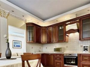 Квартира площадью 90 м расположена на 6-м этаже 33-этажного монолитного дома. В квартире есть вся необходимая мебель и бытовая техника: посудомоечная машина, духовка, стиральная машина с сушкой и канальный кондиционер.