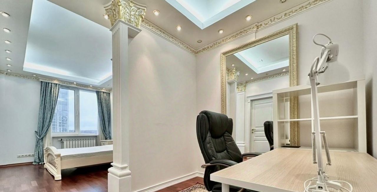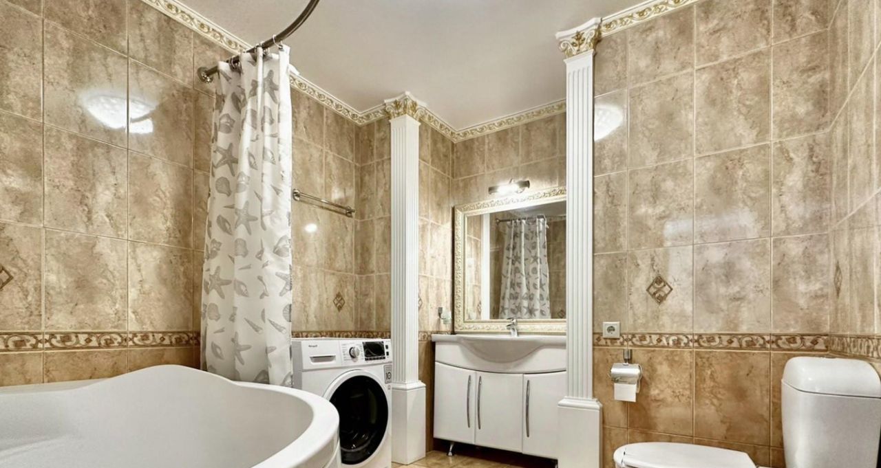 Светлая, уютная трехкомнатная квартира с евроремонтом в классическом стиле в ЖК "Миракс Парк". Квартира со всей необходимой бытовой техникой, включая посудомоечную машину, духовку, стиральную машинку с сушкой и канальный кондиционер. Совмещенный санузел с джакузи. Окна выходят во двор, с видом на озеро.