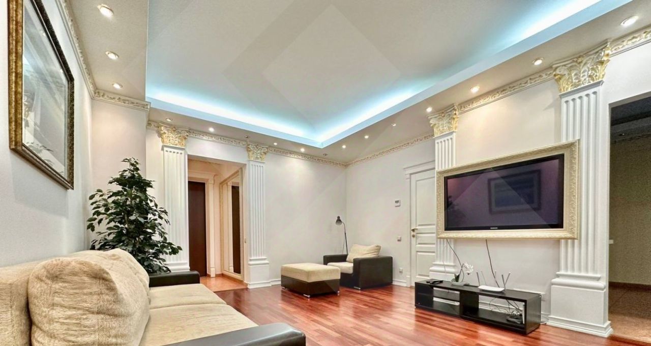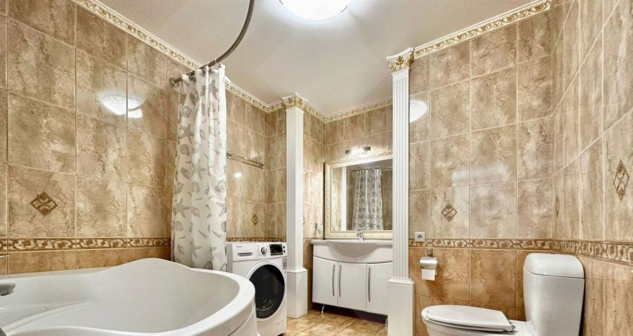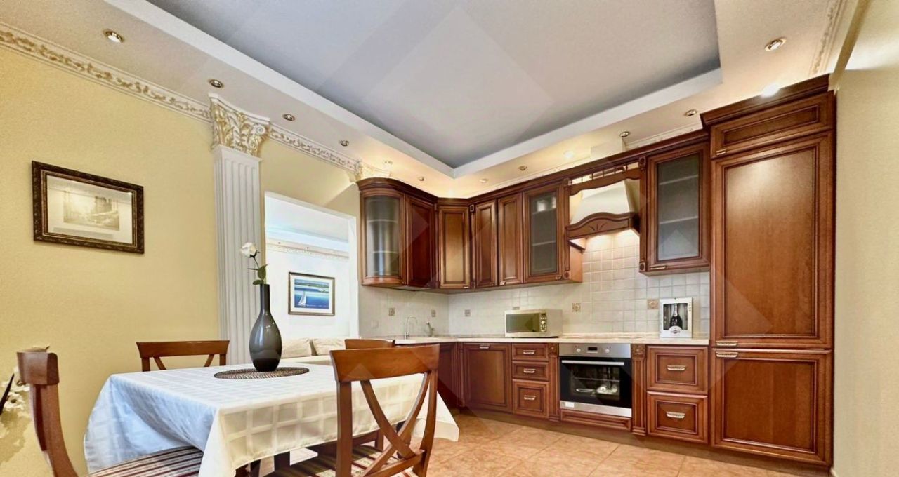 Квартира полностью меблирована и укомплектована бытовой техникой. Микроволновая печь, встроенный холодильник и морозильная камера, стиральная машина с функцией сушки, посудомоечная машина, духовой шкаф и канальный кондиционер, поддерживающий идеальную температуру во всех комнатах.