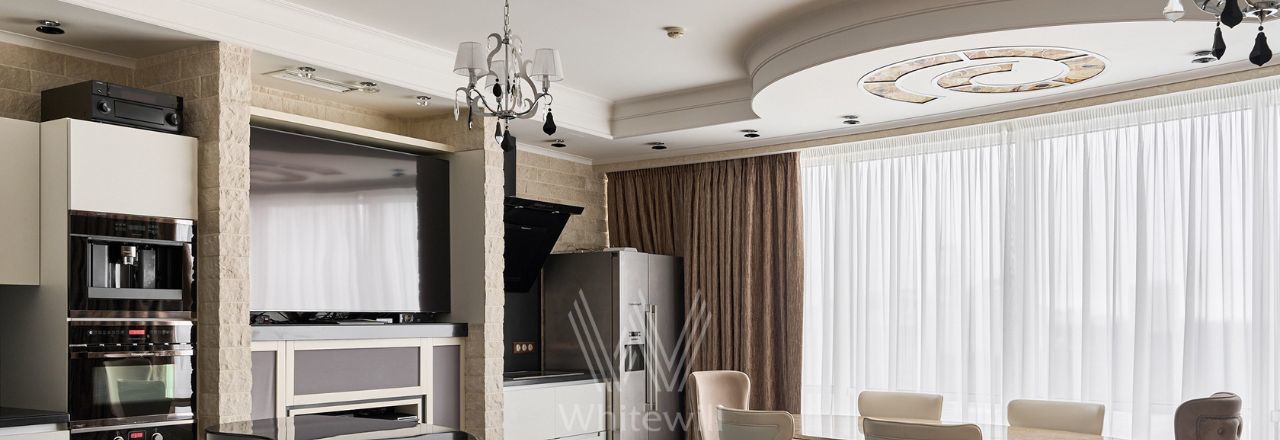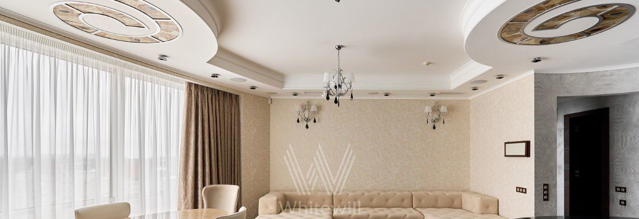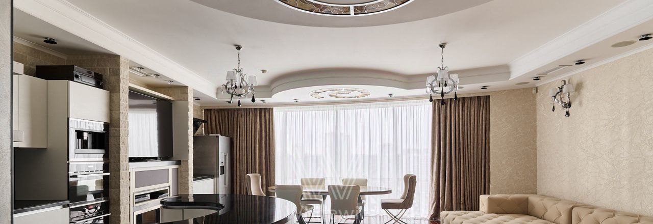 Бонус партнёрам 50%. Просторная квартира с 2 спальнями в комплексе премиум-класса "Миракс Парк" рядом с Тропарёвским прудом. Квартира общей площадью 130 м² расположена на 19 этаже. Выполнена дизайнерская отделка в стиле современной классики с элементами ар-деко. Интерьер выдержан в тёплой цветовой гамме с преобладанием бежевых, карамельных и шоколадных оттенков. Разнообразие фактур и материалов придаёт пространству выразительность и глубину.