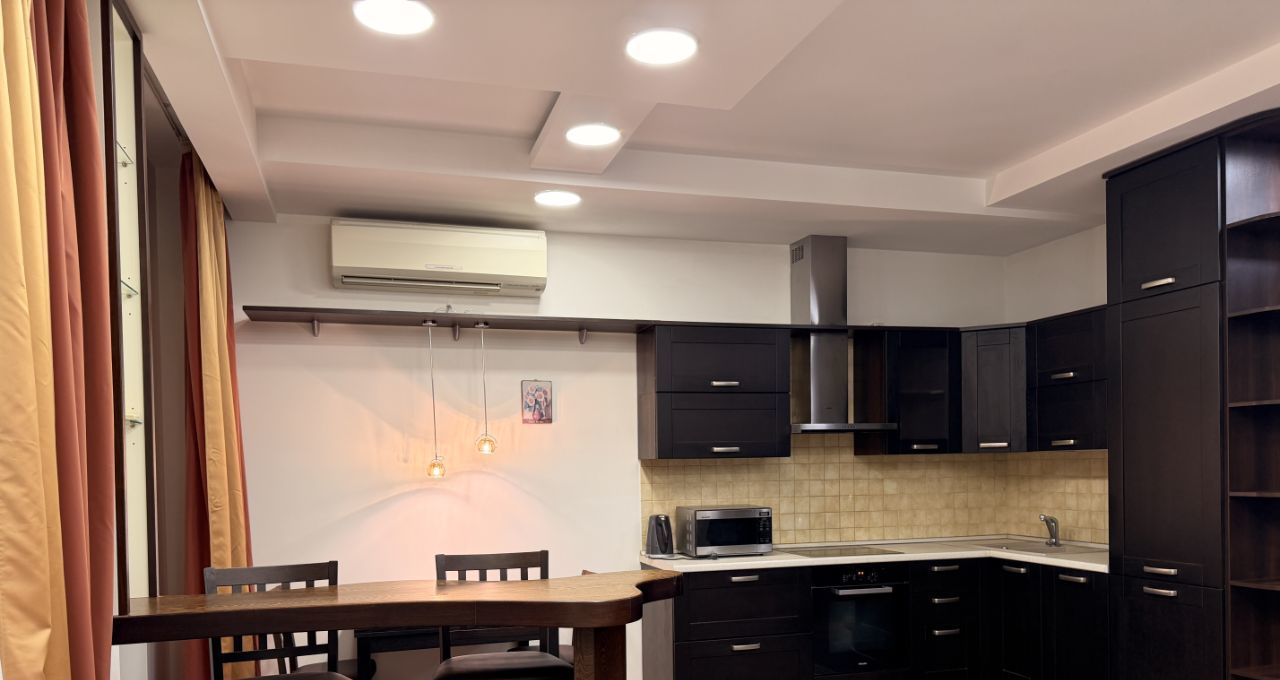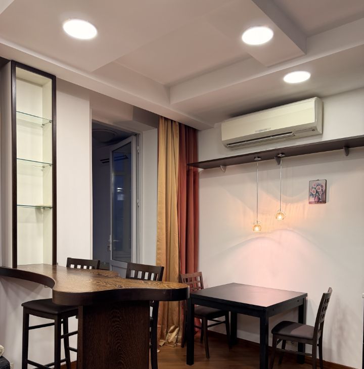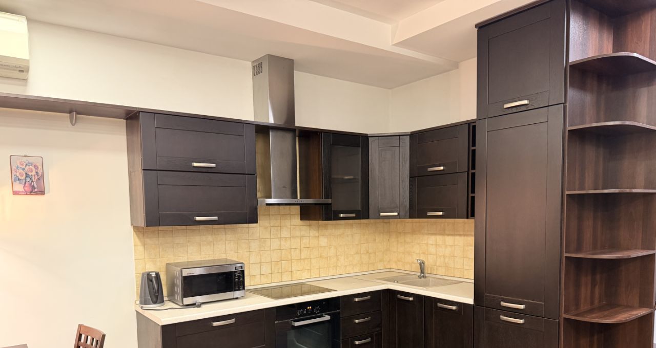 Квартира укомплектована всей необходимой мебелью и техникой (электрическая панель, духовой шкаф, вытяжка, холодильник, посудомоечная машина, микроволновая печь, стиральная машина, боллер, кондиционеры). Просторная входная, большая кухня-гостиная 30 м2 с выходом на большую лоджию, изолированная комната 14 м2, которую можно обустроить под себя (детская или кабинет), изолированная мастер спальня с гардеробной и лоджией 20 м2, два с/у с ванной и душевой кабиной.