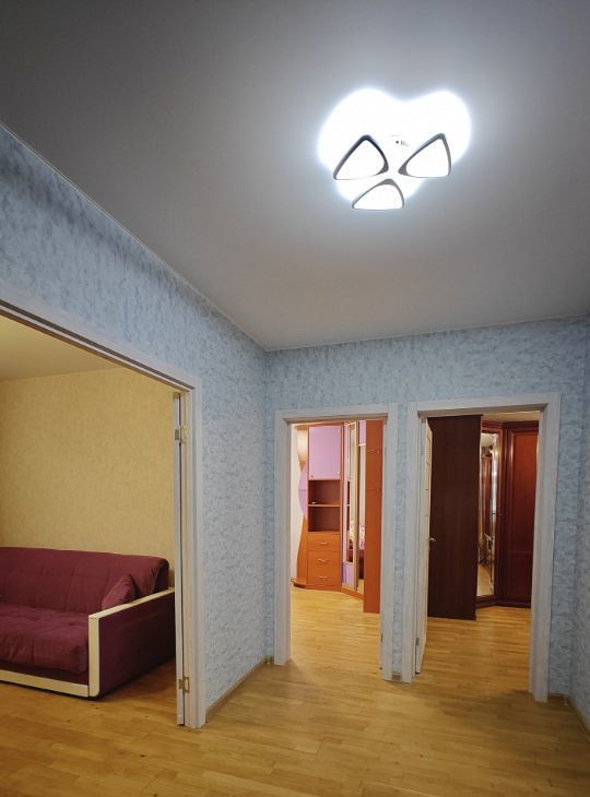 Сдается просторная трехкомнатная квартира на 11 этаже современного 17-этажного панельного дома, расположенного по адресу: проспект Защитников Москвы, 9к1. Общая площадь составляет 74.2 кв. м, жилая площадь — 44.3 кв. м, кухня — 13 кв. м. Высота потолков — 2.74 метра. Дом построен в 2011 году и оборудован пассажирским и грузовым лифтами.