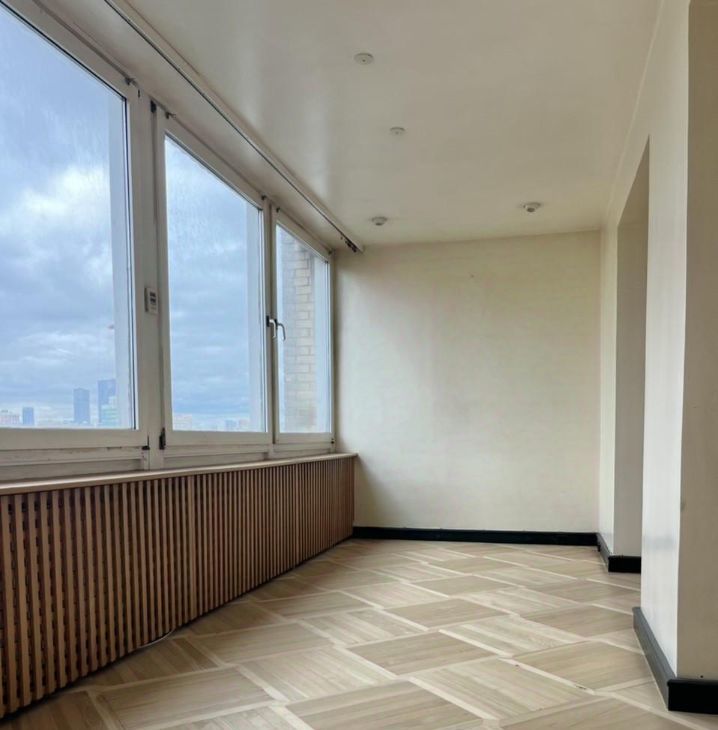На этаже просторная лоджия и мусоропровод, грузовой и пассажирский лифты.