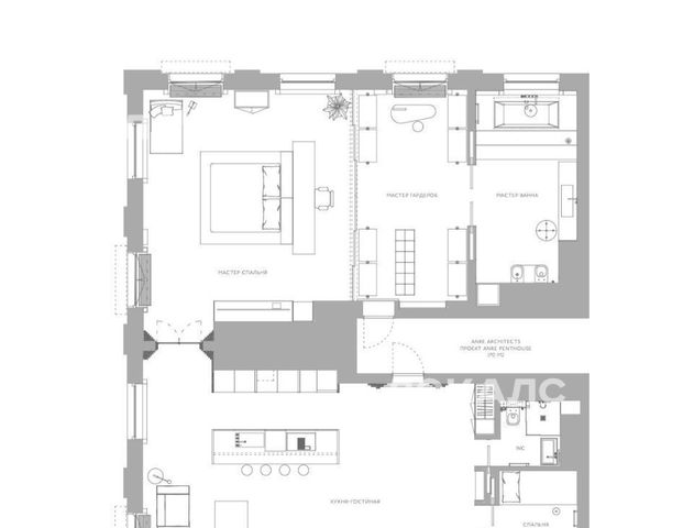 Пентхаус 160м2 с французскими балконами по периметру всей площади. 29 этаж. Потолки 3,5м.