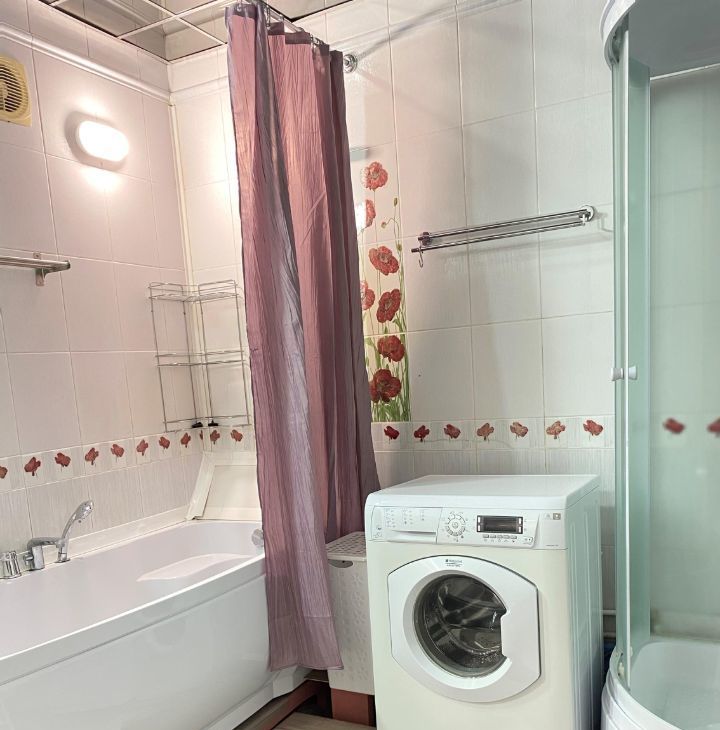В квартире сделан косметический ремонт, установлена необходимая мебель в комнатах и на кухне. Для вашего комфорта предусмотрена вся необходимая техника: кондиционер, холодильник, телевизор и стиральная машина. Планировка включает отдельную кухню площадью 5 кв.м, совмещенный и отдельный санузлы, в которых есть как ванна, так и душевая кабина.