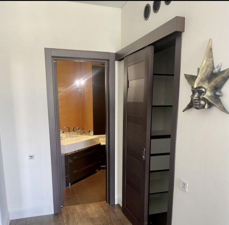 В квартире сделан дорогой и качественный ремонт с использованием хороших отделочных материалов, основная часть площади пола покрыты массивом дуба тонированным маслом. Остальной пол из керамогранита с подогревом, всего 5 (пять) зон с отдельной регулировкой подогрева для каждой. Сплит-система.