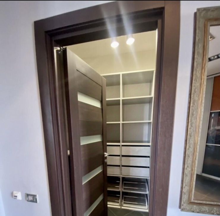 Мебелированная квартира общей площадью 102 квадратных метров. Авторский дизайн и исполнение. Уютное, стильное, качественное, красивое, надежное пространство. Прихожая-холл, гостиная и кухня объединены в одно пространство. Две спальни, детская и взрослая. Два санузла, один во взрослой спальне. Две гардеробные комнаты, одна у входа в квартиру, вторая расположена во взрослой спальне. Два балкона, один из которых утеплен и объединен с кухней в одно пространство, на нем устроен кабинет.