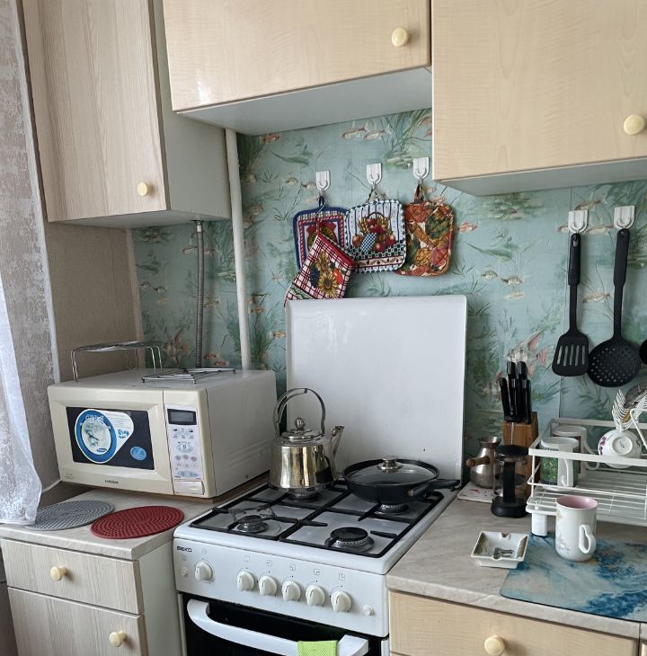 Стиральная машинка, холодильник, микроволновка, окна во двор и на улицу, с/у раздельный. 5 этаж 9 этажного дома. Год постройки 1971, панель. Есть мусоропровод, интернет, 1 пассажирский лифт.