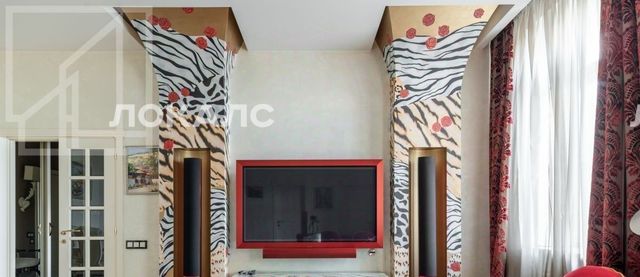 Планировка включает кухню, 2 спальни, гостиную, санузел, гардеробную и кабинет. Есть балкон. Потолки 4 м Ремонт в квартире выполнен в уникальном авторском стиле.