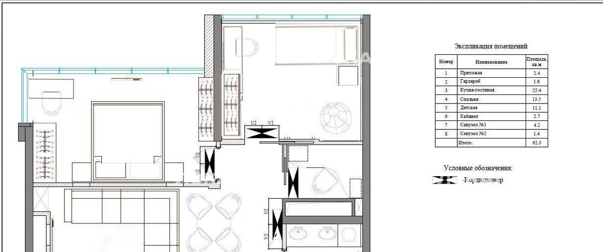 - Полностью оборудована мебелью и техникой, гардеробная, кондиционеры