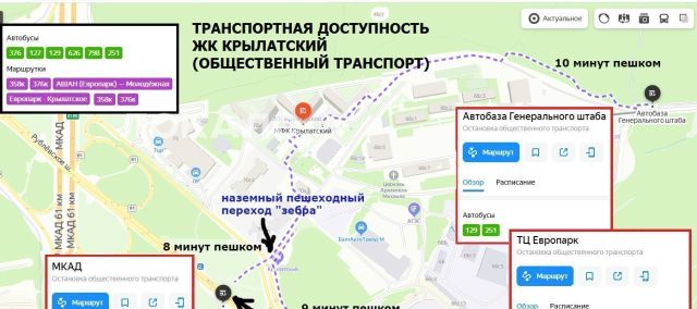 Автобусы и маршрутки до м. Крылатское и Молодежная в пешей доступности