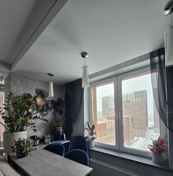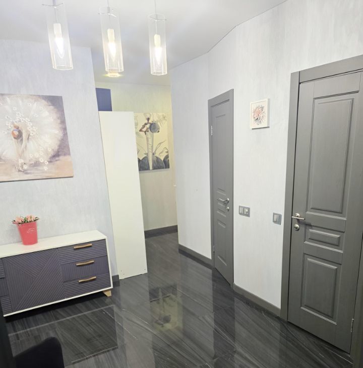 Главные плюсы квартиры это ее просторные комнаты, включая санузлы. у нас нет длинных, узких, коридоров, как у всех. две комнаты имеют полностью панорамное остекление: в гостиной стена 4.5 метра, в спальне 2.5 метра. просторный холл, где можно поставить диван! входная группа отделена от всей квартиры, поэтому верхней одежды и обуви, не видно. самая шикарная комната это кухня- гостиная, 24 кв. имеет еще окно, помимо панорамы