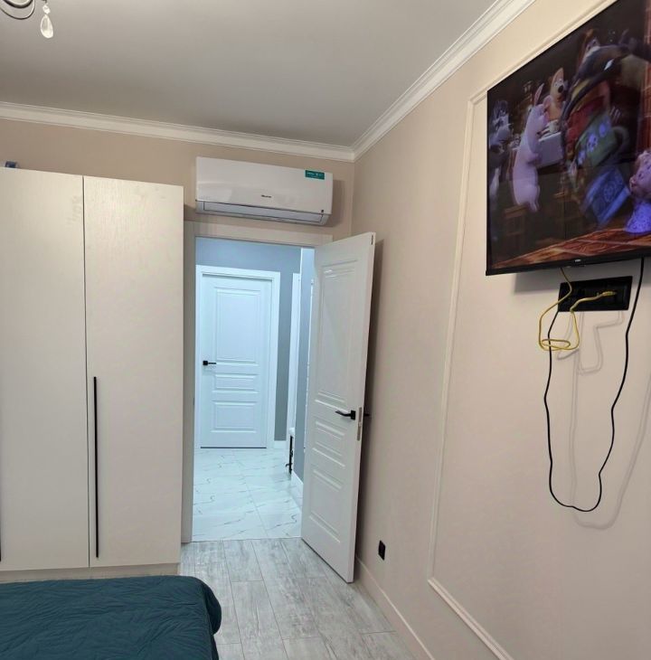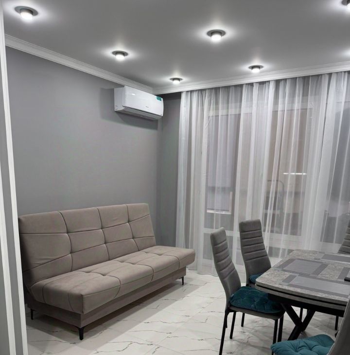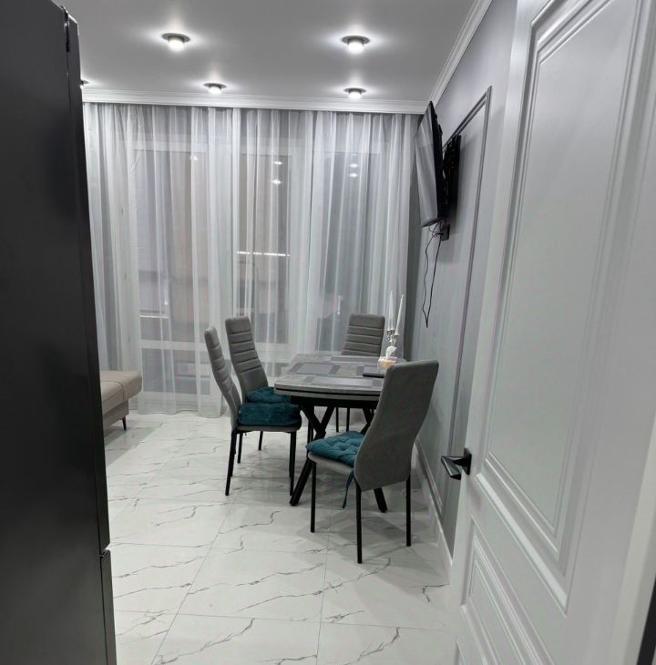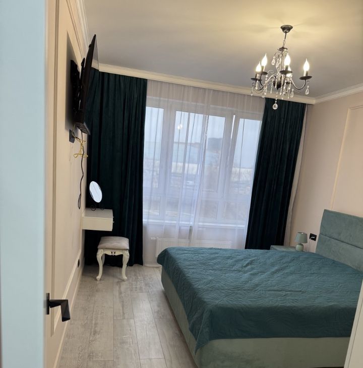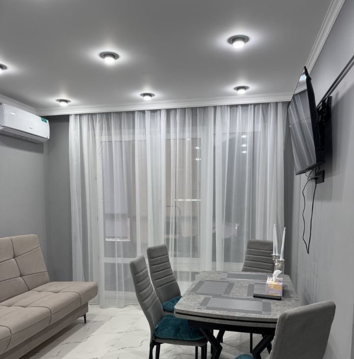 В квартире выполнен качественный евроремонт, который создаёт уют и комфорт. Просторная кухня площадью 18 кв. м оборудована современной мебелью и техникой, включая кондиционер, холодильник, посудомоечную машину и телевизор. В комнатах также есть необходимая мебель и техника, в каждой комнате кондиционер и телевизор. В ванной комнате установлена душевая кабина, что станет приятным дополнением к вашему отдыху после насыщенного дня. Окна квартиры выходят во двор, поэтому вас не потревожит шум города. Также имеется одна лоджия, где можно насладиться свежим воздухом.