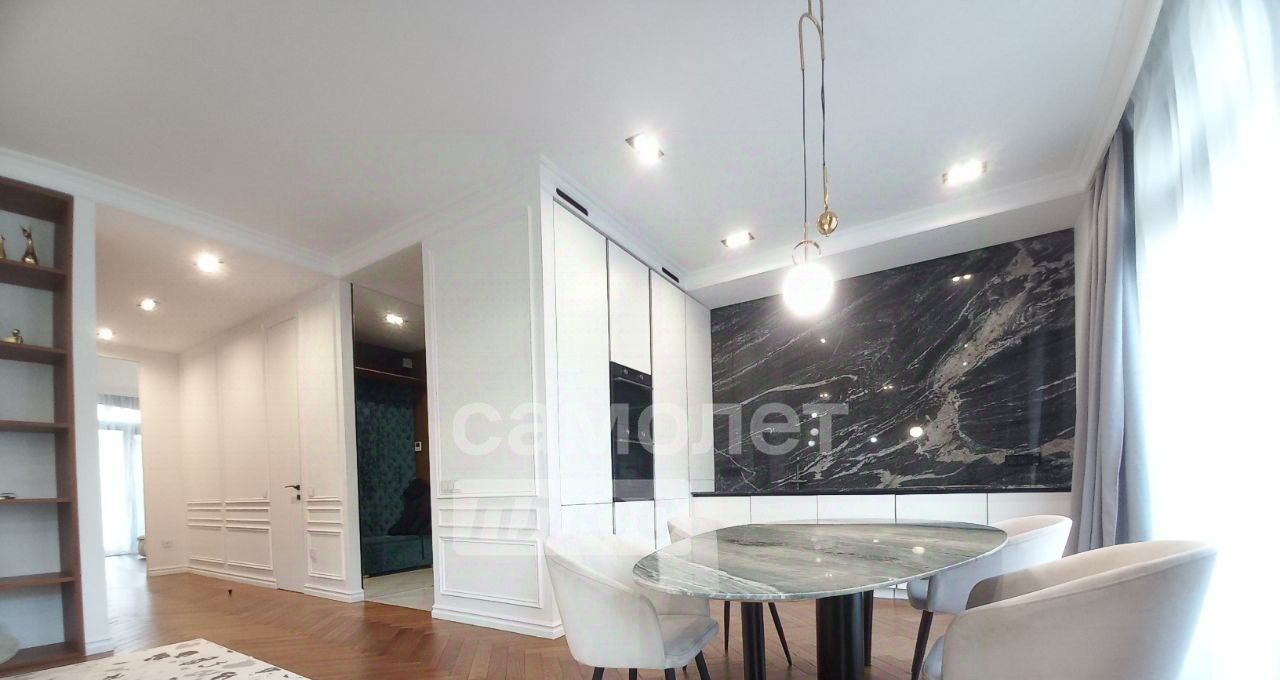 Пространство площадью 109 м², расположенное на втором этаже, встречает утончённой атмосферой современной классики. Дизайнерская отделка, выверенная до мельчайших деталей, создаёт гармоничное сочетание элегантности и функциональности.