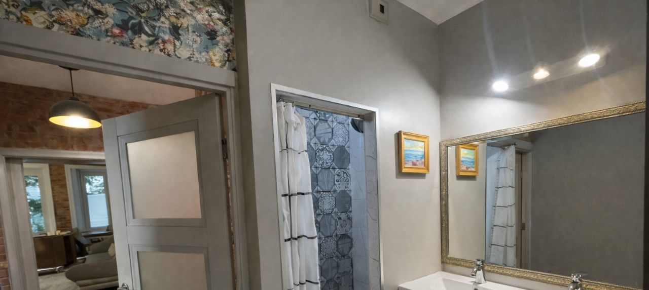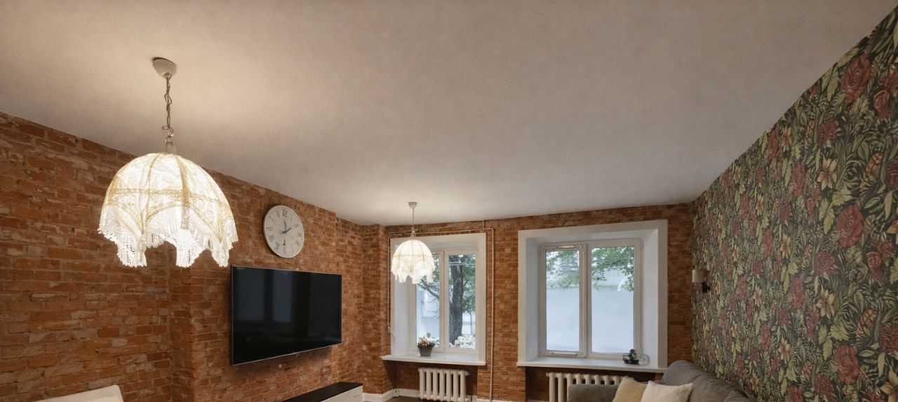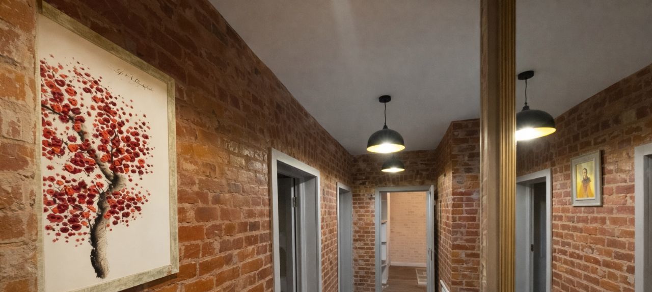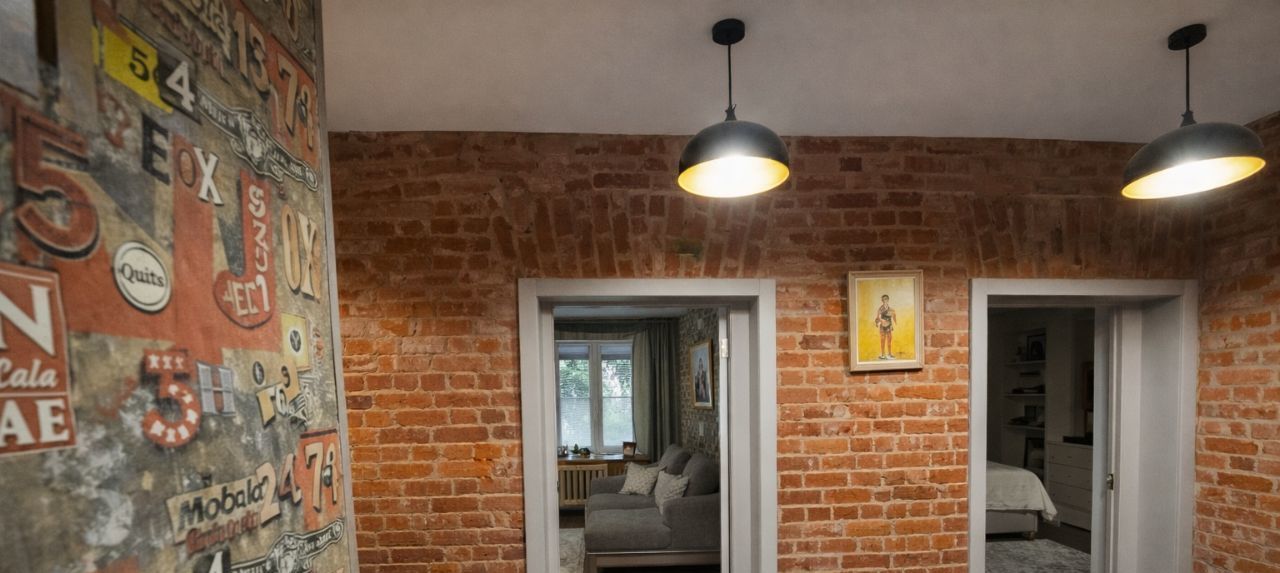 Авторский интерьер с кирпичной кладкой и дизайнерскими акцентами