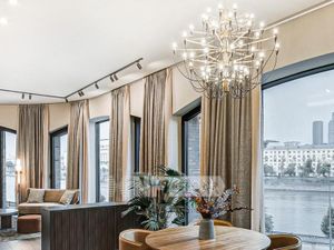 В квартире: С мебелью, М/место в подземном паркинге, Посудомоечная машина, Стиральная машина, Сушильная машина, Бойлер, Душевая кабина, Спутниковое/кабельное телевидение, Видеонаблюдение, Сигнализация, Охрана, Интернет, Видовая квартира, Можно с детьми, Можно с животными, Вид на реку, Европланировка, Ванна, Интерьер в современном стиле, Консьерж, Кондиционер, Апартаменты, Гардеробная комната, Лифт, Ремонт - дизайнерский, Кухонная мебель, Окна на улицу, Окна во двор