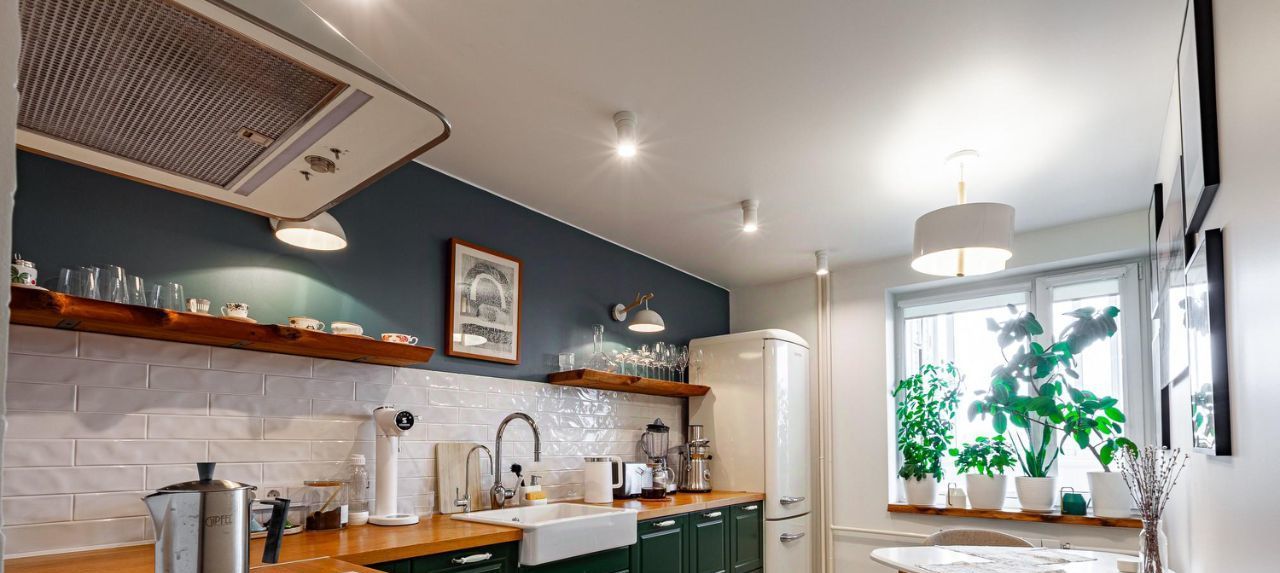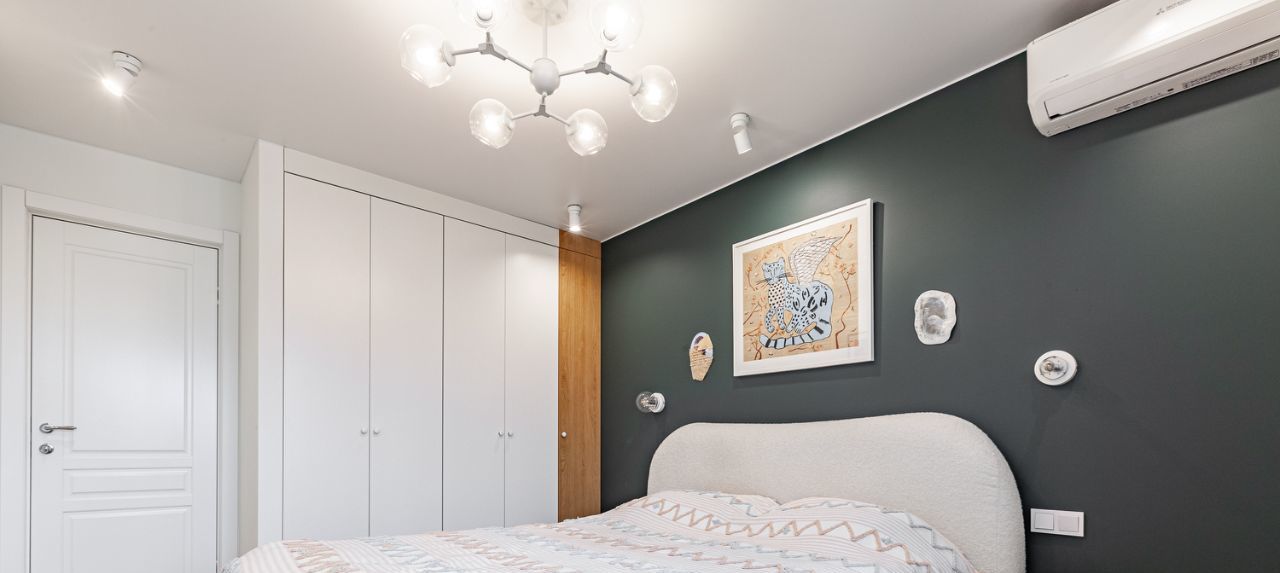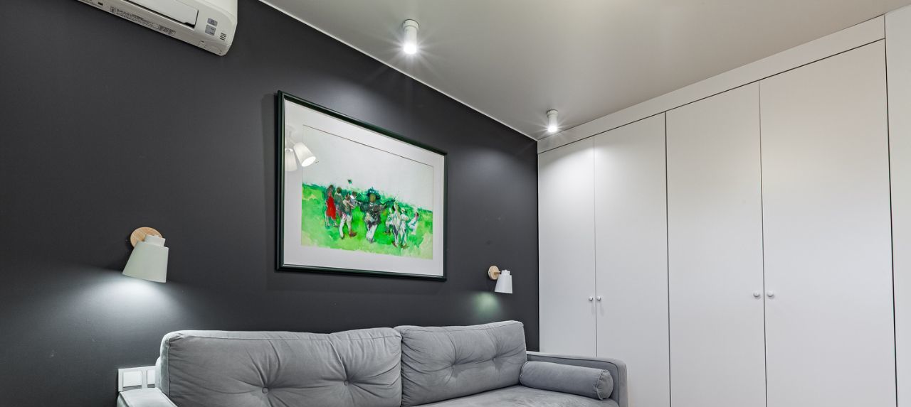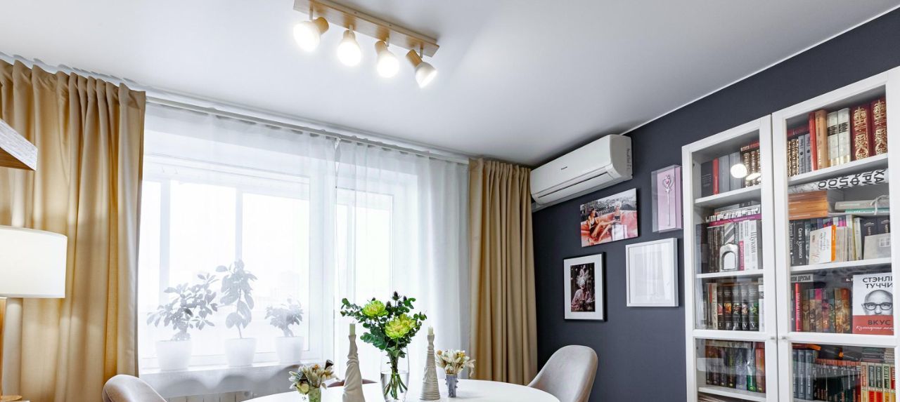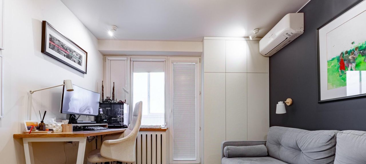 Весь кухонный блок остается в квартире (настенные полки и подоконник из массива карагача). Из квартиры вывозится только мягкая мебель, все остальное может быть оставлено, в том числе, часть техники. В каждой из жилых комнат есть выводы для установки кондиционеров.
