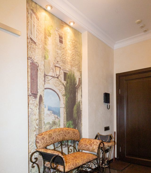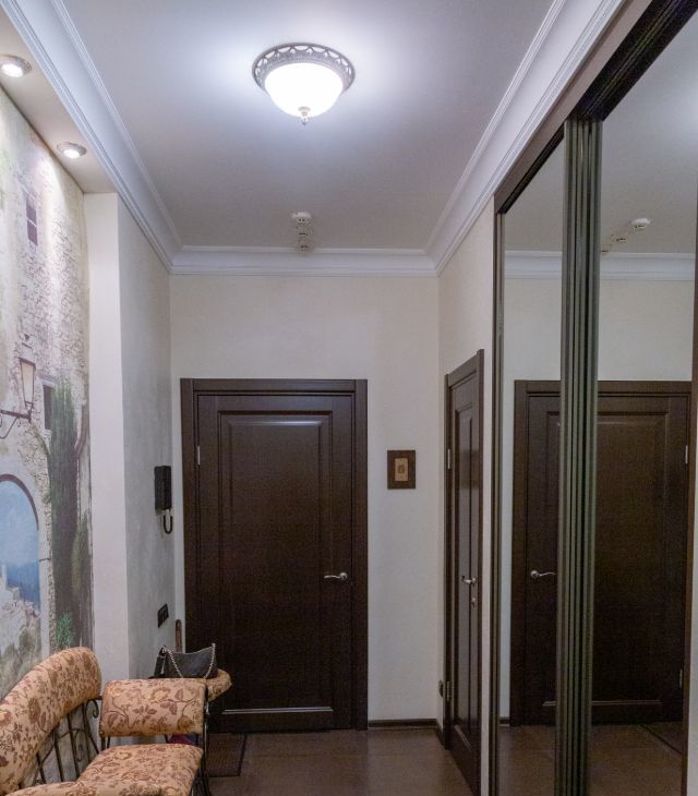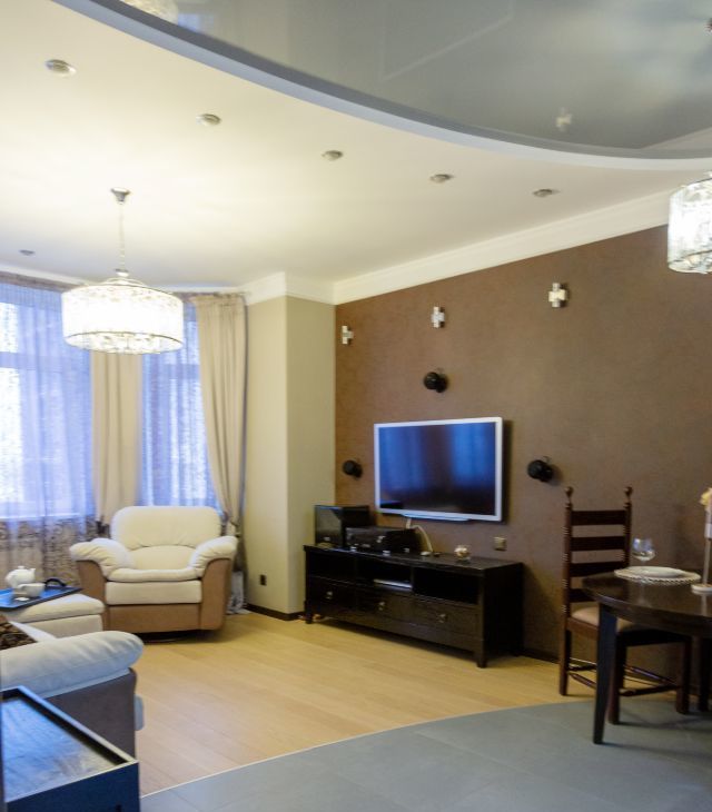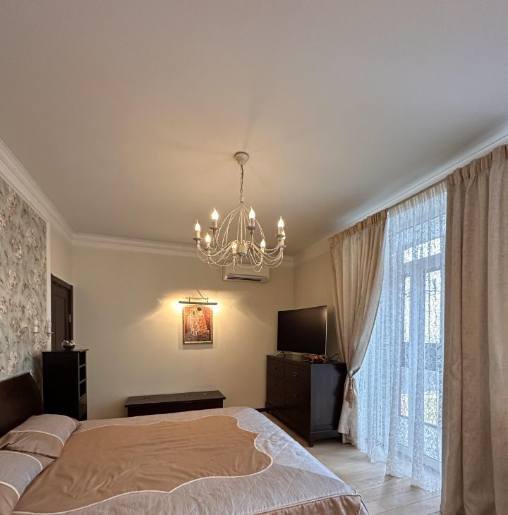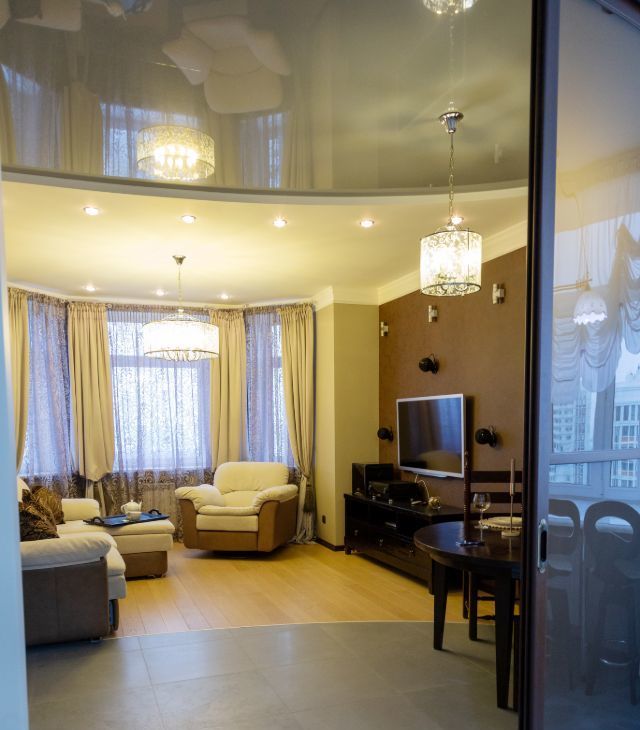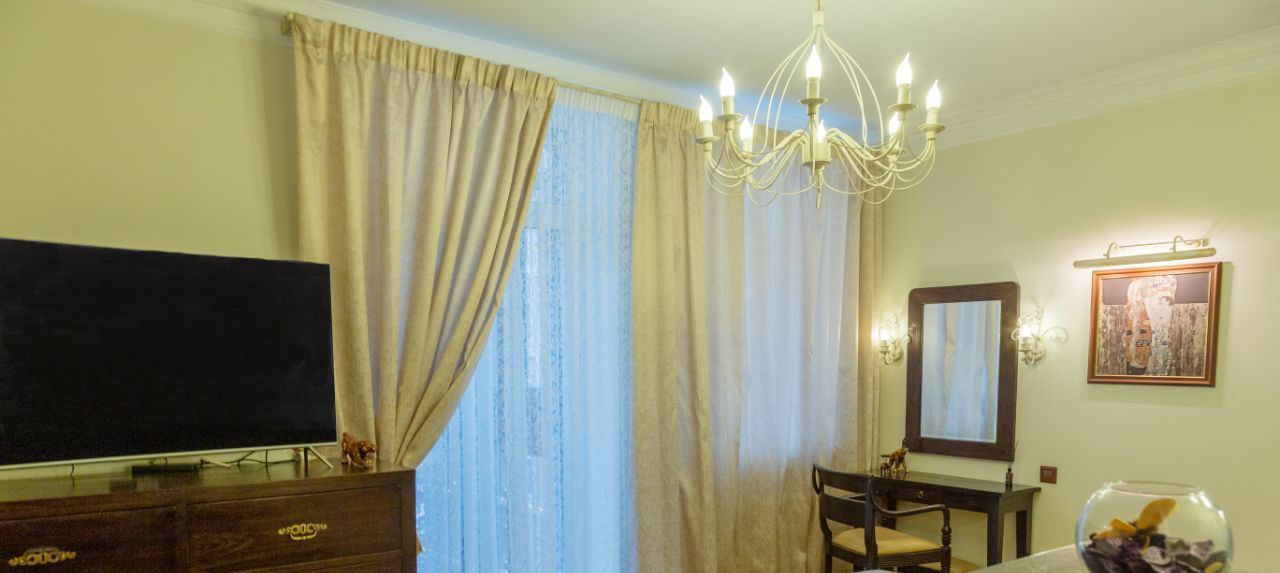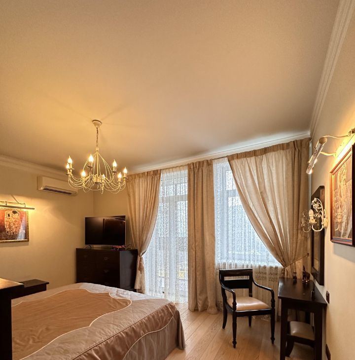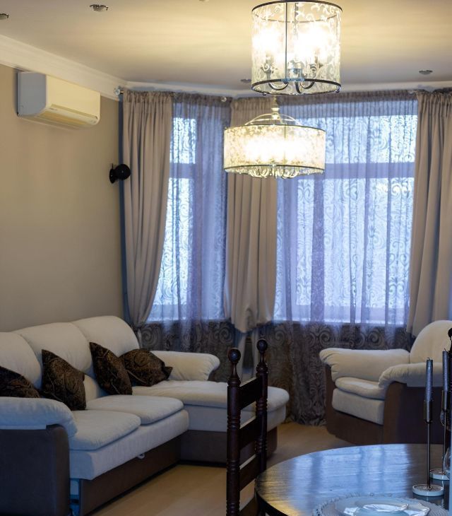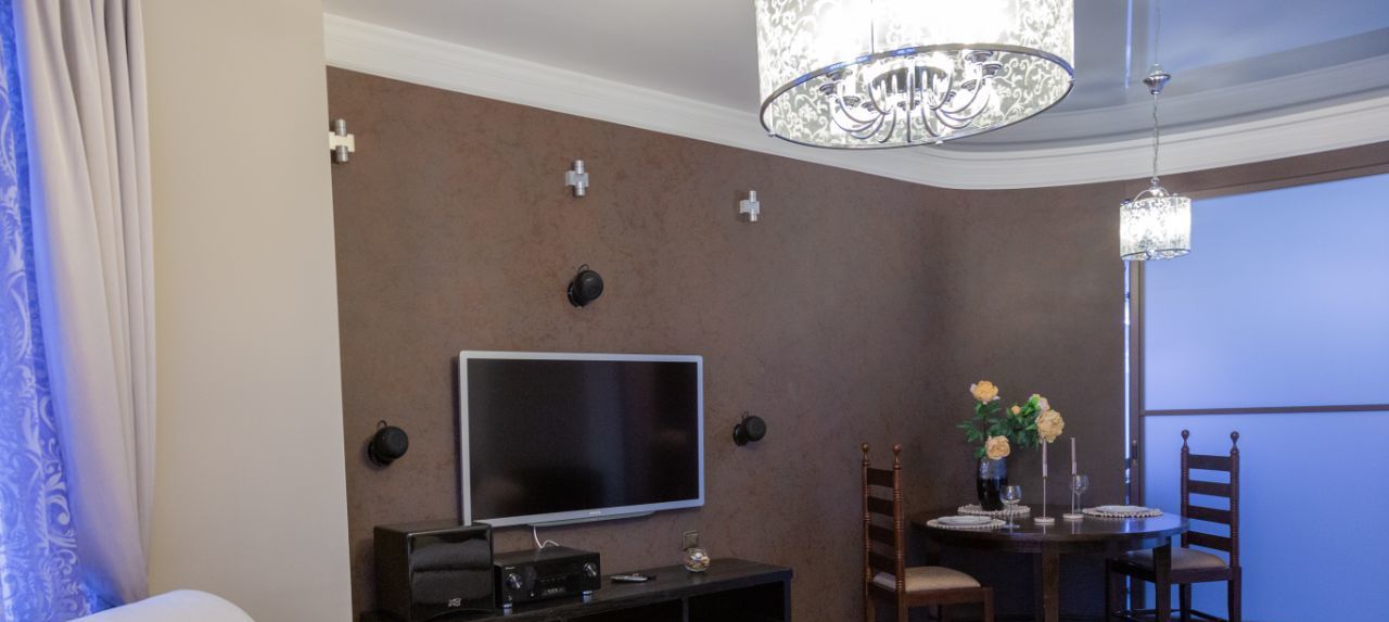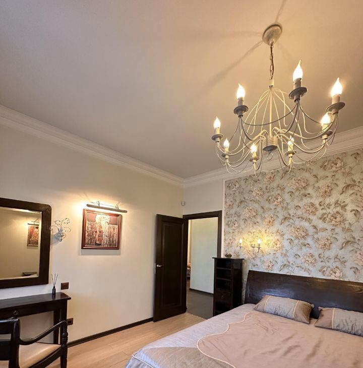 В гостинной мега удобный мягкий диван и кресло, дорогая тиковая мебель имеющая визуально-тактильно притягательную фактуру. Стереосистема. В квартире разработаны все опции, чтобы сохранить эргономичность и удобство вашего проживания. Два санузла, просторный холл, всё для ценителей комфорта. Квартира полностью укомплектована бытовой техникой, включая посудомоечную машину, стиральную машину, бойлер. Система кондиционирования в каждой комнате, программируемый тёплый пол. Современное функциональное и декаративное освещение по всей квартире.