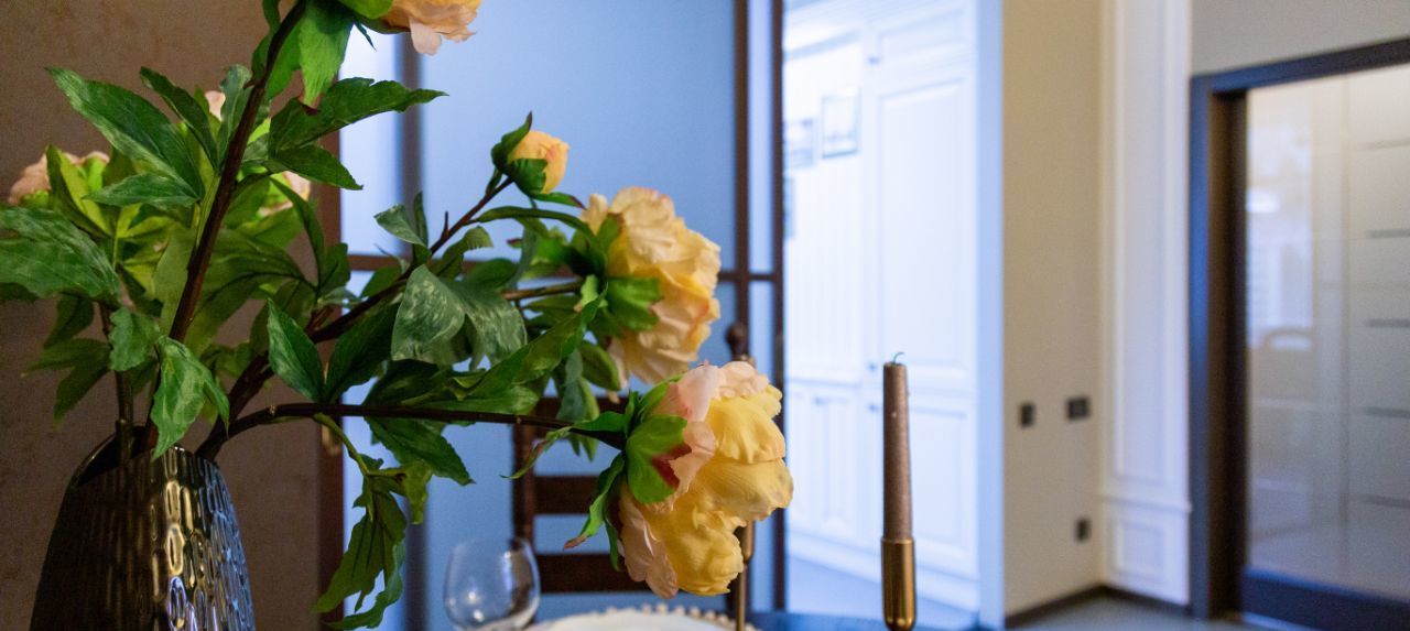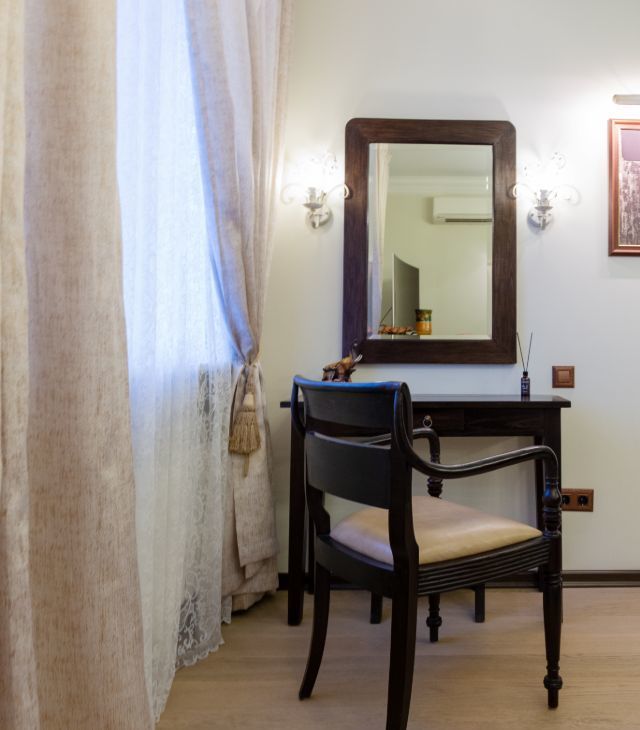 Квартира расположена на высоком этаже, что добавляет ей красивые виды, чистый воздух, меньше шума и пыли, больше хорошего естественного освещения и ощущение приватности, окна выходят во двор и на улицу.