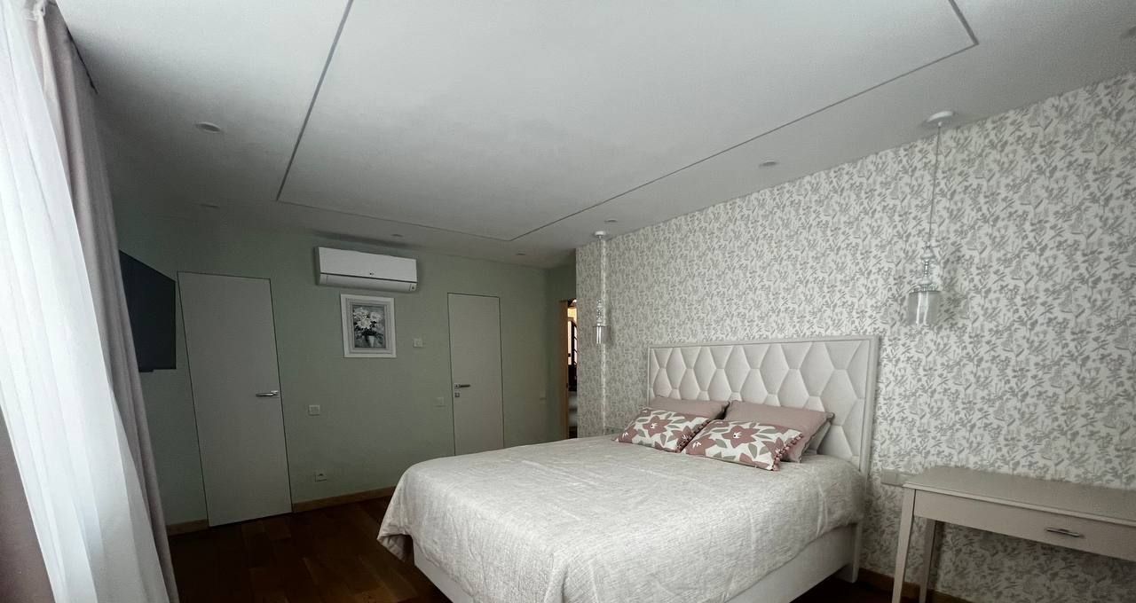 Выполнен дизайнерский ремонт с использованием натуральных материалов. Квартира оснащена системой тёплых полов и сплит-системой кондиционирования. Полностью меблирована и укомплектована всей необходимой бытовой техникой, включая матрасы повышенной комфортности и продуманные системы хранения.