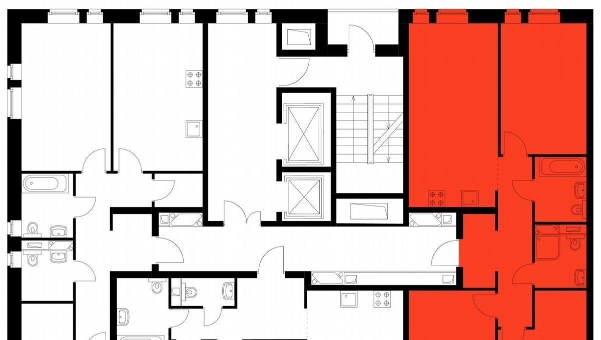 В подъезде 10 жилых этажей, на каждом по 3 квартиры, 2 лифта: пассажирский и грузовой.